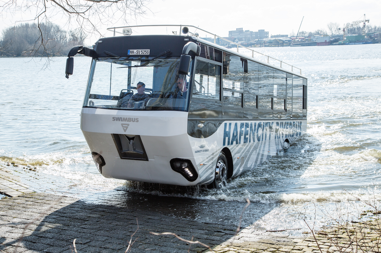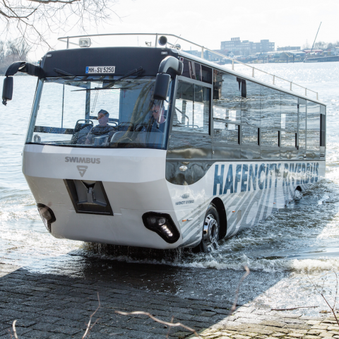 Il sogno di Fred Franken, operatore marittimo e appassionato di autobus, si è realizzato: da ormai due mesi circola per le strade – e le acque – di Amburgo il primo autobus anfibio della Germania. Il veicolo, costruito su un telaio per camion MAN e allestito da un’azienda ungherese, ha subito raccolto l’attenzione degli amburghesi e il favore dei turisti con oltre 6 mila passeggeri trasportati in soli due mesi. L’Hafencity Riverbus è un veicolo particolare che ha richiesto profonda esperienza nella sua progettazione e altrettanta ne necessita la sua manutenzione: “Non si tratta né di un autobus, né di un battello, finora non ci sono veicoli simili – ha spiegato Mike Vannauer, Direttore Commerciale Autobus Nord di MAN Truck & Bus Deutschland GmbH – Per accedere rapidamente ai pezzi da riparare in caso di necessità è richiesto un approfondito know-how tecnico da parte dell’officina”. La sfida più ardua, fa sapere il proprietario tedesco, è stata l’omologazione: i veicoli anfibi non sono contemplati dalla normative tedesche ed è stato necessario installare anche i pulsanti per prenotare le fermate per ottenere il parere favorevole delle autorità locali. L’originale mezzo si comporta come un normale autobus nelle tratte cittadine, ma la sua estrema versatilità gli permette di diventare il primo bus anfibio in Germania a trasportare i turisti per le attrazioni più importanti della città di Amburgo, sia sulla terra ferma sia sulle acque del fiume Elba.