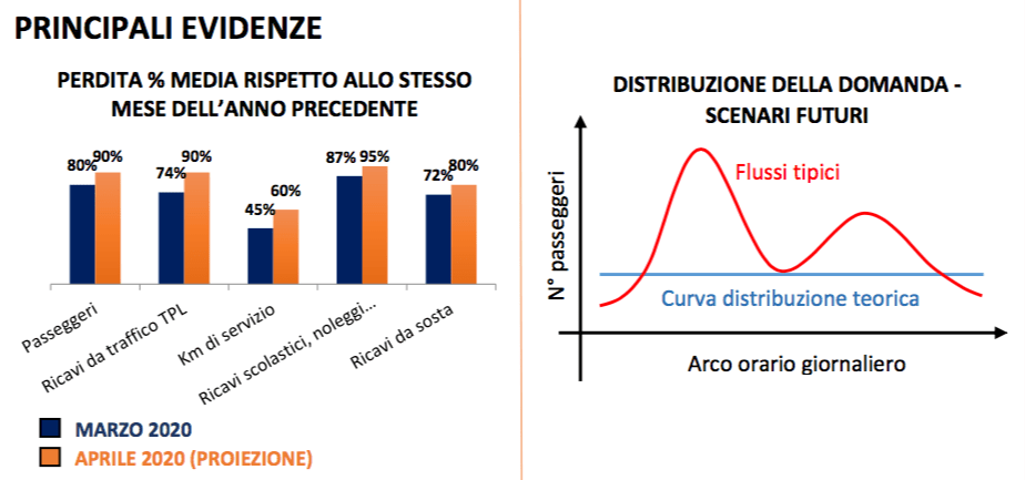 «Nel mese di marzo 2020 l’effetto COVID-19 ha determinato un crollo verticale della domanda di mobilità pubblica (-80%) e dei ricavi da biglietti e abbonamenti (-74%). Tale situazione, come rilevato da indagini dirette, è destinata a peggiorare nel mese di aprile 2020. La perdita di ricavi da traffico media mensile è stimabile, a livello medio nazionale, in oltre 200 milioni di euro», si legge nel documento ASSTRA, focalizzato su scenari e conseguenze dell’impatto del Coronavirus sul trasporto pubblico. L’analisi si basa su dati tratti dai questionari che sono stati inviati il 6 aprile 2020 a tutte le aziende associate ad ASSTRA. Hanno risposto in 67.
