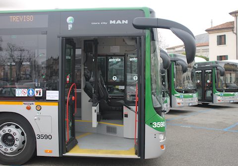 Mom – Mobilità di Marca ha presentato mercoledì scorso alla città di Treviso i nuovi autobus dedicati al trasporto urbano. Si tratta di cinque mezzi alimentati a metano modello Lion’s City prodotti da Man: 12 metri di lunghezza, particolarmente adatti ai circuiti cittadini, avranno una capienza fino a 93 posti (di cui 23 a sedere). Man che si è aggiudicata la fornitura è stata insignita anche del riconoscimento Bus of the Year 2015, anche grazie a questo modello particolarmente confortevole sia alla guida che negli interni.