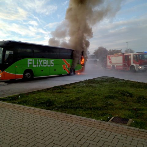 Un autobus Flixbus ha preso fuoco questa mattina al terminal di Vasto, in Abruzzo. Momenti di paura per gli utenti in attesa all’autostazione. Il conducente è riuscito a fare scendere tutti i passeggeri in tempo. Nessuno è rimasto ferito. Si trattava dell’autobus partito da Termoli alle 7.05 in direzione Roma. L’incidente è riportato sugli organi di stampa locali, tra cui Vasto web. Pochi, secondo quanto riportato, i passeggeri a bordo. Da accertare le cause delle fiamme, sprigionate dal vano motore.
