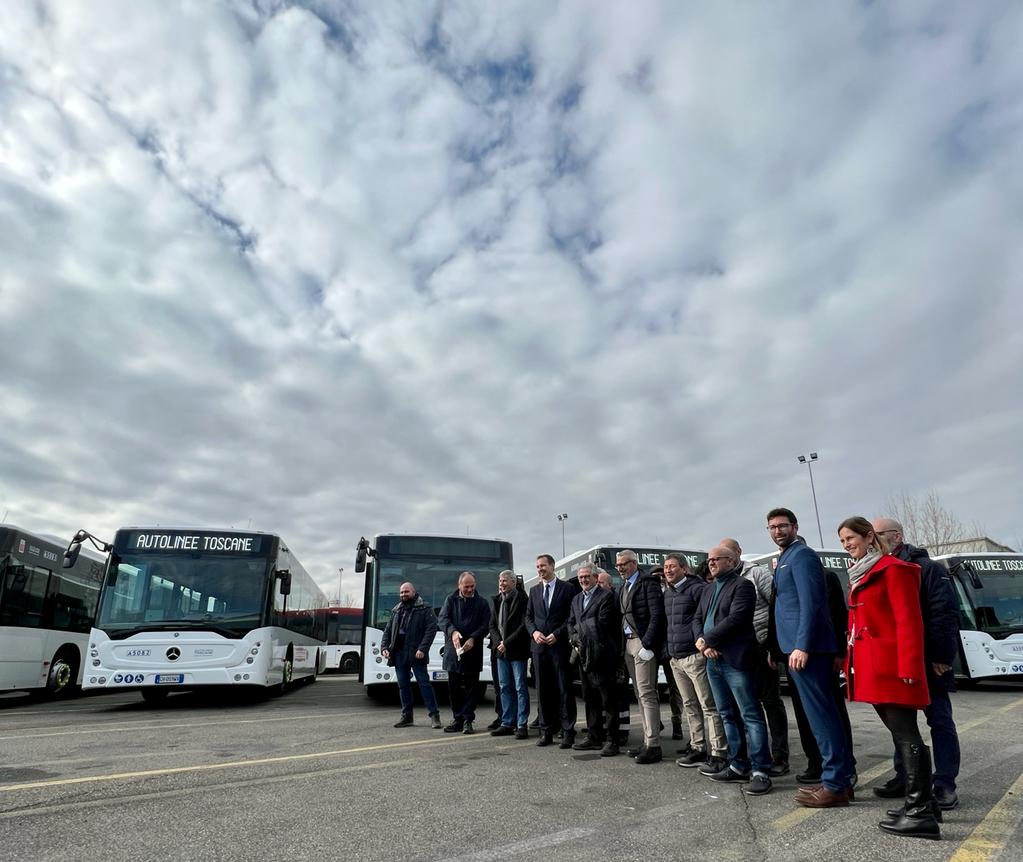 oddisfatto anche l’assessore regionale alle infrastrutture e alla mobilità , Stefano Baccelli: ”Il risultato che vediamo oggi è importante. Abbiamo già 10 nuovi bus urbani che circoleranno per Firenze, e altri 40 in arrivo sempre destinati alle aree urbane della Toscana. È un risultato tangibile della svolta che abbiamo impresso al trasporto pubblico locale con una gara a lotto unico che non si era mai realizzata prima. Bus nuovi, più efficienti, esteticamente omogenei nel colore e destinati a diventare sempre più eco sostenibili. Il trasporto pubblico locale su gomma sta davvero facendo un salto di qualità che si completa con l’intermodalità , con il treno, con le nostre piste ciclo pedonali. Siamo partiti il 1° novembre con l’obiettivo che il tpl in Toscana non sia solo un efficiente trasporto sociale per il pendolarismo degli studenti e lavoratori, ma che diventi un sistema di modalità alternativo e competitivo rispetto al trasporto privato”. Per l’assessore alla mobilità e trasporto pubblico locale del Comune di Firenze, Stefano Giorgetti ”l’arrivo di questi nuovi bus è importante perché oltre ad essere Euro 6, hanno una buona capienza, tre porte e il ricambio d’aria, particolarmente utili in questo momento vista la situazione di pandemia ancora in essere”. L’assessore Giorgetti ha aggiunto: ”È un tassello di un significativo rinnovamento del parco mezzi per il quale anche noi faremo la nostra parte. Grazie ai circa 6 milioni previsti dai fondi Re-act acquisteremo nuovi bus elettrici che vorremmo far entrare in servizio entro l’anno. Si tratta di mezzi da utilizzare soprattutto in centro storico dove contiamo non solo di riattivare le linee ancora sospese causa Covid ma di aggiungerne una quinta per potenziare in modo significativo il servizio. Faremo un accordo con AUTOLINEE TOSCANE per concedere in uso i bus elettrici che acquisteremo. È importante far vedere alla città il cambiamento in atto sia per la riduzione dell’inquinamento sia per il miglioramento del servizio perché il nostro obiettivo è privilegiare il trasporto pubblico e la mobilità ciclabile e ridurre l’uso dell’auto privata. E quindi dobbiamo incrementare il servizio in termini di mezzi e di chilometri”. ”Questo è il nostro primo appuntamento: da quando siamo partiti ci siamo impegnati su tanti fronti, il primo di questi era quello di introdurre almeno 200 nuovi autobus entro il primo anno – ha dichiarato l’amministratore delegato di AUTOLINEE TOSCANE, Jean-luc Laugaa -. Questo è il primo passo in questa direzione. I nuovi autobus hanno uniformità di colore e rappresentano il simbolo di una visibilità unica del trasporto pubblico in Toscana”.