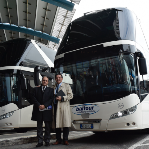 Presente all’appello anche Franco Pedrotti, responsabile di Man bus&coach Italia. «Il top per il top», ha chiosato Pedrotti, «cioè il massimo della tecnologia e del design per la prima azienda italiana del settore del lungo raggio. Il due piani scelto da Baltour conta al suo interno 75 sedute ed è equipaggiato con wifi, prese elettriche e distributore di bevande». Ma lo Skyliner di Baltour è anche un concentrato di «sicurezza in quanto equipaggiato con le tecnologie di ultima generazione». Insomma, gli ‘stranieri’ sono avvertiti. Il mercato sta mutando, giorno per giorno.