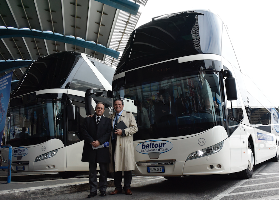 «L’Italia non è terra di facile conquista. Noi operiamo in questo settore, ormai da anni, con grande successo. E ora rilanciamo in termini di qualità del servizio e di quantità di linee offerte». Non le manda a dire Agostino Ballone, presidente della Baltour che a Roma ha esposto il piano industriale e ha battezzato i due nuovi autobus a due piani, i Neoplan Skyliner. «Primi di una serie», ha tenuto a precisare lo stesso Ballone, «che presto andranno a implementare una flotta già moderna, estremamente sicura e con un basso impatto ambientale, visto che già da alcuni anni noi acquistiamo solo ed esclusivamente autobus Euro VI».