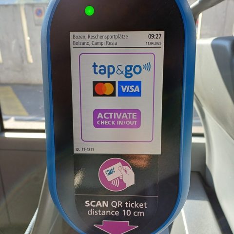 «Tutti i passeggeri che non hanno un abbonamento “Alto Adige Pass” o un biglietto “altoadigemobilità” valido con ‘tap&go’ possono pagare il viaggio su un autobus urbano in modo semplice e senza registrazione con carta di credito o carta di debito con funzione di pagamento attivata», ha aggiunto Dejaco”.