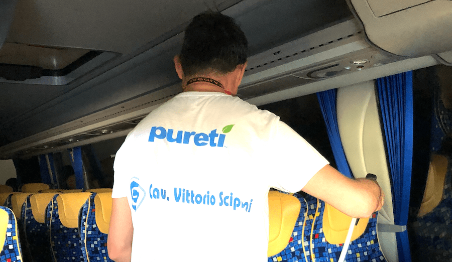 Sanificazione bus. Dalla collaborazione tra Air Pullman s.p.a e Pureti’, azienda distribuita in Italia dalla Cav. Vittorio Scipioni di Milano, è partita oggi una sperimentazione che punta a rivoluzionare gli standard di sicurezza ambientale all’interno degli autobus.