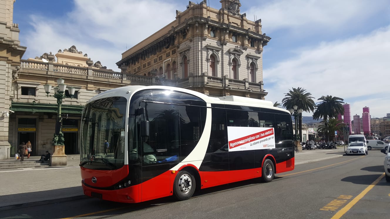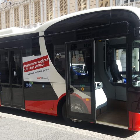 “#genovameravigliosa con i bus elettrici. Lo stiamo provando per voi”.