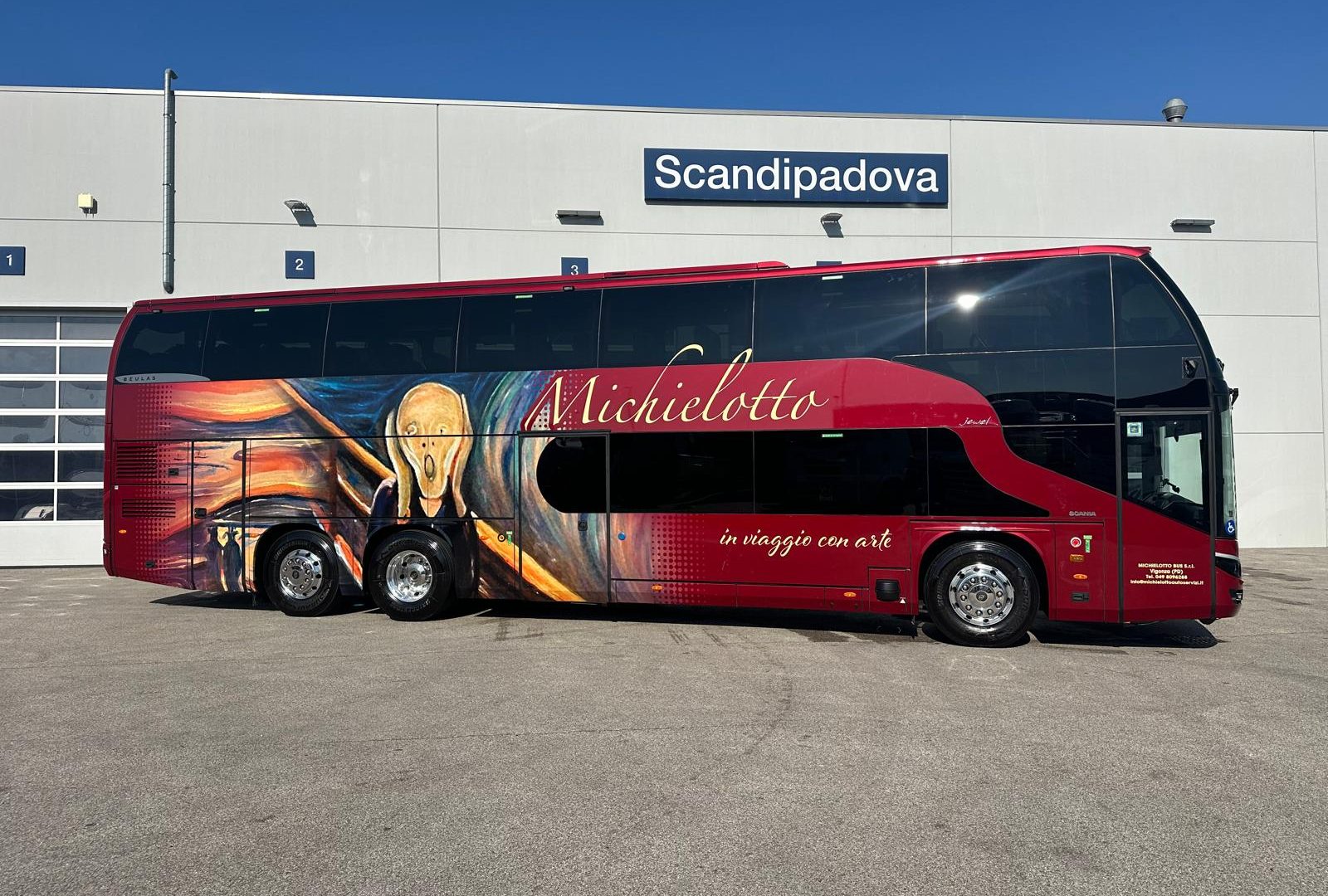 Come tutti i coach della Michielotto, anche questo due piani veste una livrea artistica, che come potete ben vedere nelle foto ritrae il celeberrimo Urlo di Edvard Munch.