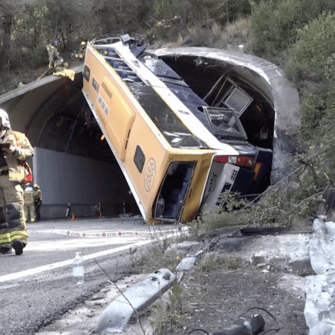 Autobus “prende il volo” salendo sopra il cordolo di una galleria: grave l’autista e (almeno) tre passeggeri. L’incidente in Spagna