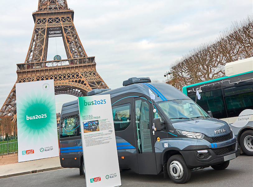 I primi passi di Iveco nel campo della trazione alternativa a gas naturale risalgono a 25 anni fa, a testimonianza dell’impegno preso dal marchio di CNH Industrial nel mondo dei veicoli meno inquinanti e più sostenibili. E, proprio in occasione della COP21, la 21esima Conferenza sui cambiamenti climatici, Iveco ha presentato a Parigi 16 veicoli eco-friendly, di cui due autobus turistici e un minibus. A disposizione di RATP Iveco Bus ha messo due Magelys Euro 6 e la novità dell’anno, il Daily elettrico da 16 posti a zero emissioni. Rispetto alla generazione precedente il minibus ha un’autonomia di 110 o 160 km (in base al set di batterie utilizzate) e vanta un’efficienza migliorata del 25%. Nei bus da turismo, invece, le particolarità che aiutano a rendere il trasporto passeggeri più sostenibile riguardano l’esclusivo sistema per abbattere le emissioni HI-SCR (Selective Catalytic Reduction), le alimentazioni a gas naturale compresso o liquido e la funzione “Arrive & Go”, compatibile sia con la trazione ibrida sia con quella elettrica. Quest’ultima, introdotta con la nuova generazione dell’Urbanway, permette di viaggiare in modalità elettrica per circa 60 metri in fase di avvicinamento e di partenza dalle fermate e dai semafori. Un contributo importante per l’ambiente che nella versione Full Hybrid consente di risparmiare fino al 35% di gasolio rispetto ad un autobus tradizionale.