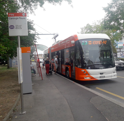 L’autobus elettrico King Long sarà dotato del sistema di ricarica flash che ricarica la batteria in pochi secondi, mentre i passeggeri salgono e scendono dall’autobus. Un sistema già in funzione a Ginevra (Svizzera) con autobus Hess (nella foto).