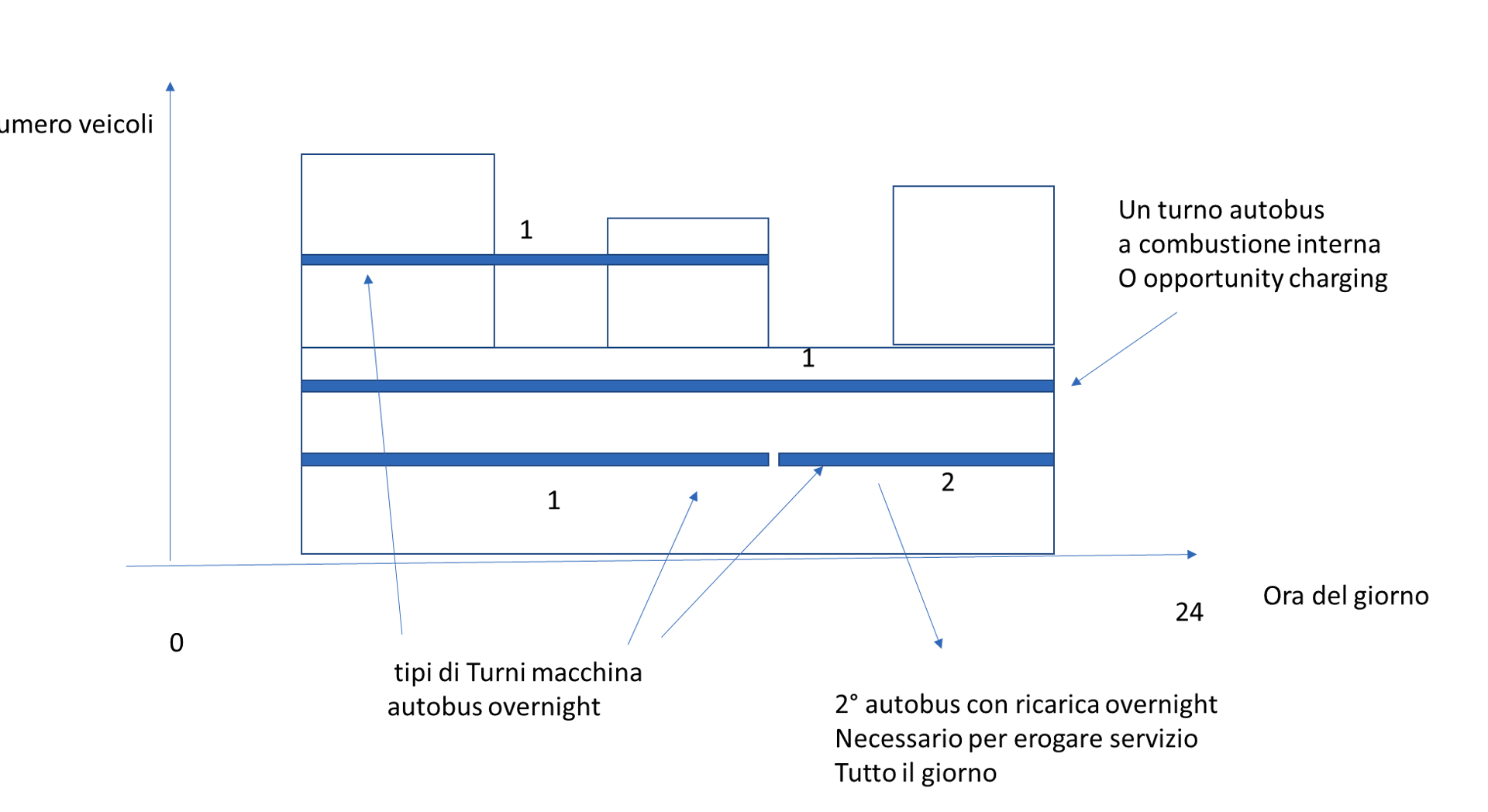 Se l’operatore, irrigidendo l’uso della flotta, riuscisse ad utilizzare gli elettrici over night nei momenti di picco del mattino o in linee particolari l’incremento di costo sarebbe contenuto. Ma se per sua disgrazia pensa di utilizzarli anche nella parte piatta del servizio, allora sarebbe guai seri in quanto il numero di mezzi raddoppierebbe rispetto al numero attuale in quanto l’autonomia degli over night richiede, come è noto, l’utilizzo di due autobus al posto di un unico esemplare.