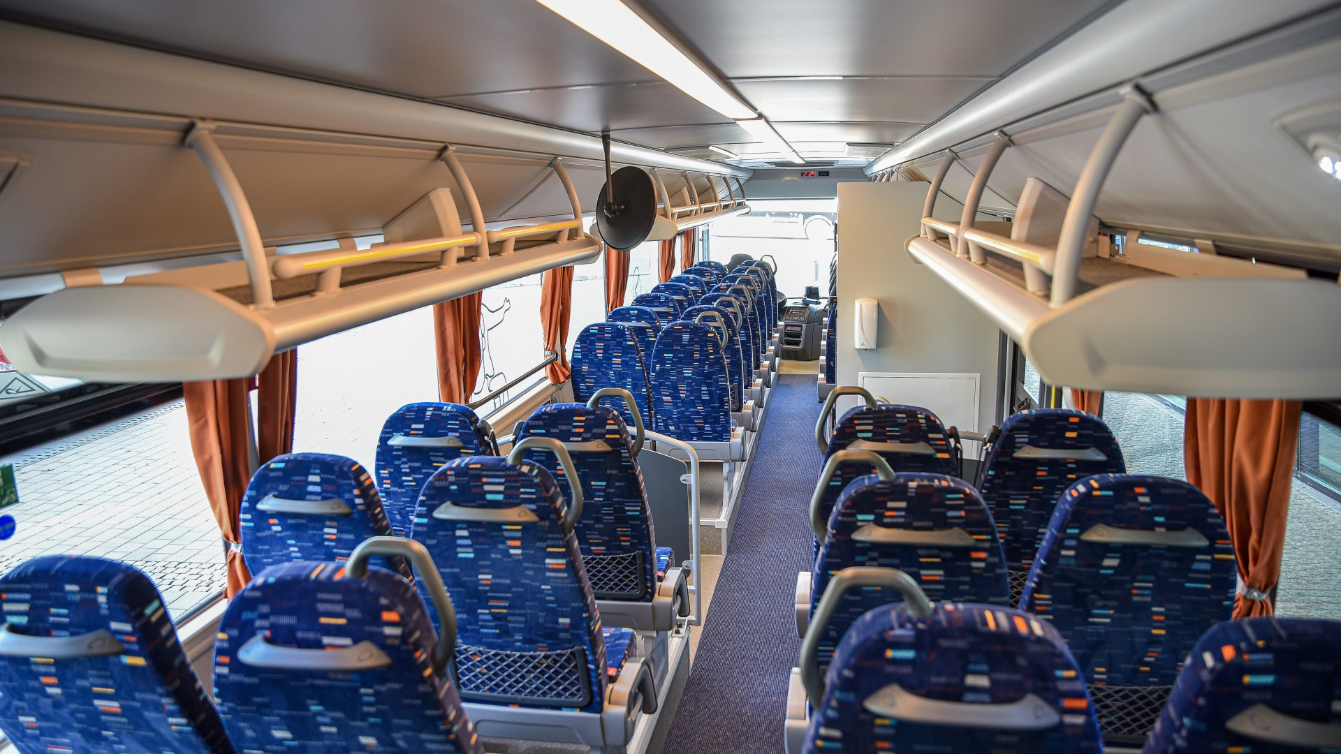 L’abitacolo del MAN Lion’s Intercity può essere allestito in modo flessibile a seconda delle richieste dei clienti. Si parte dalla normale configurazione base come scuolabus con sedili semplici, o come autobus interurbano con rialzo intercambiabile, elevatore idraulico nella scala posteriore per il trasporto di massimo due passeggeri su sedia a rotelle e vani portaoggetti aperti. Il Lion’s Intercity “a doppio uso” completamente equipaggiato, con specifico allestimento da parte del MAN Bus Modification Center di Plauen, può trasformarsi eventualmente anche in un veicolo per lunghe distanze grazie alla presenza di un bagno davanti alla seconda porta, vani portaoggetti e utili tendine sui doppi vetri. Al posto del vano ripostiglio di serie, su richiesta è possibile integrare nella postazione di guida anche un frigorifero da 41 litri. L’interno, con un’altezza di 2.230 mm, è luminoso e di facile manutenzione. I sedili regolabili, del tipo “Intercity Lite”, sono sempre montati su rialzi per permettere alle persone più anziane di alzarsi facilmente e offrire spazio ai passeggeri.