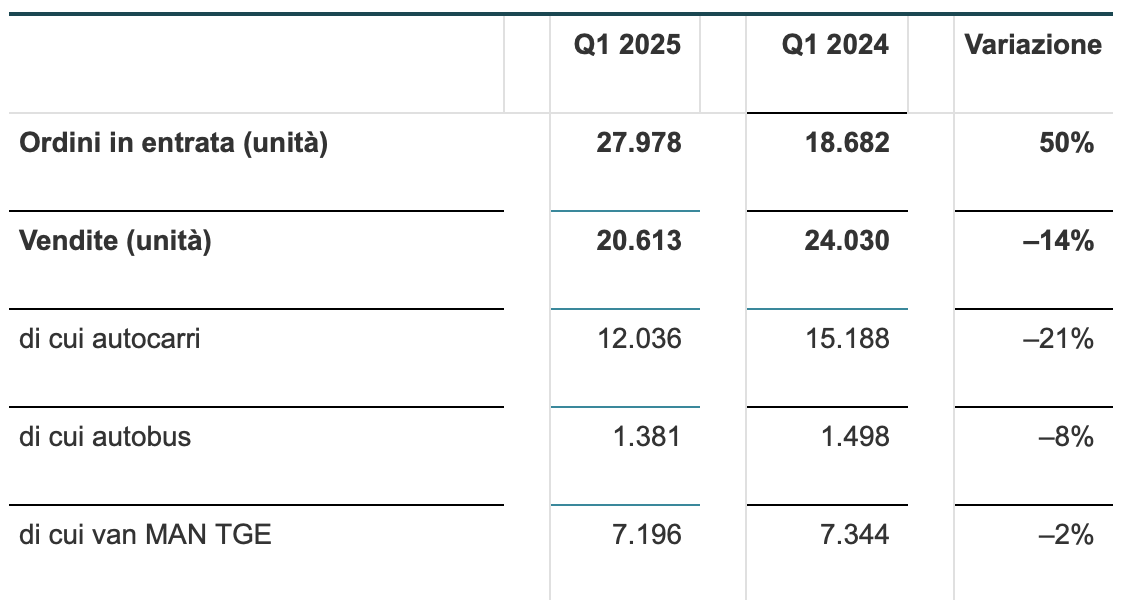 Quando ormai manca poco alla fine di aprile, è arrivato il report di MAN Truck & Bus sul primo trimestre 2025. Un primo trimestre più debole rispetto allo stesso periodo 2025 a causa, dice il Leone di Monaco di Baviera, «della domanda contenuta da parte dei clienti».