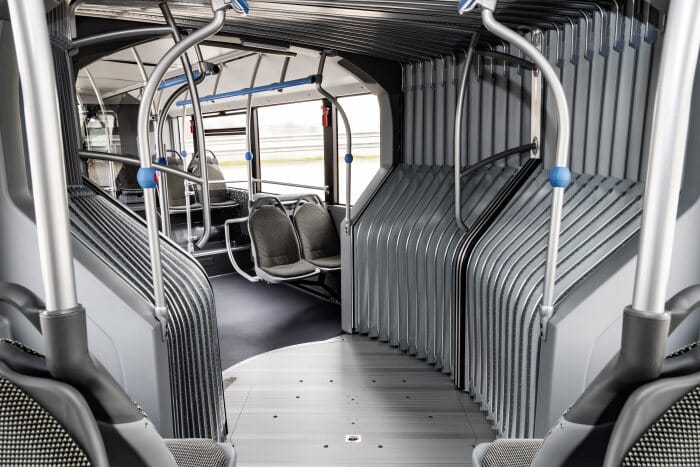 Il Mercedes eCitaro G, con una lunghezza di 18,13 metri, sarà in grado di trasportare fino a 146 passeggeri (136 con la batteria più grande, composta da 12 moduli) su un pianale ribassato dove possono essere collocati fino a 45 sedute.