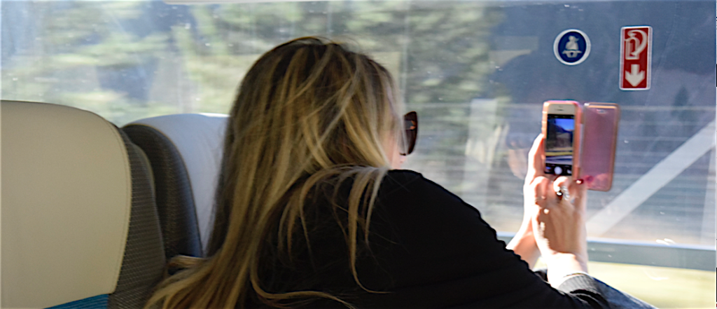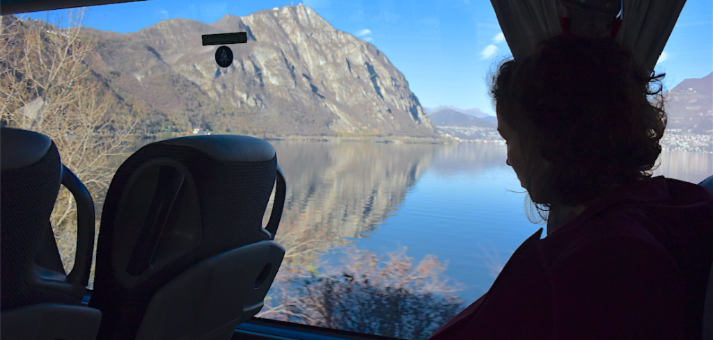 L’autobus da 81 posti accoglie per questo viaggio 35 persone, per lo più straniere. Si sonnecchia, si legge, si mangia all’interno di un Setra che scivola senza problemi sull’asfalto svizzero. Merito anche del sapiente piede di György. Il silenzio colpisce. Anche le telefonate dei passeggeri sono sopportabili e ci fanno dimenticare le urla tipiche del Freccia Rossa. Peccato per il wifi, che qui non funziona.