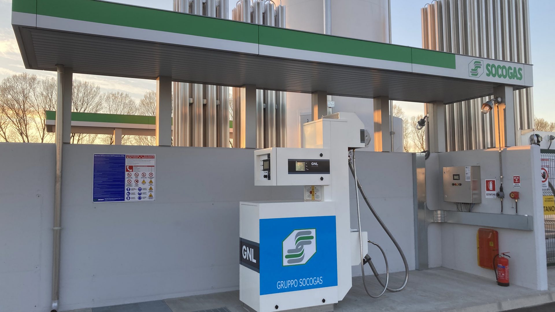 Il Gruppo Socogas apre a Fidenza un nuovo distributore di metano liquido (LNG) per mezzi pesanti e metano gassoso (L-CNG) per auto e furgoni.