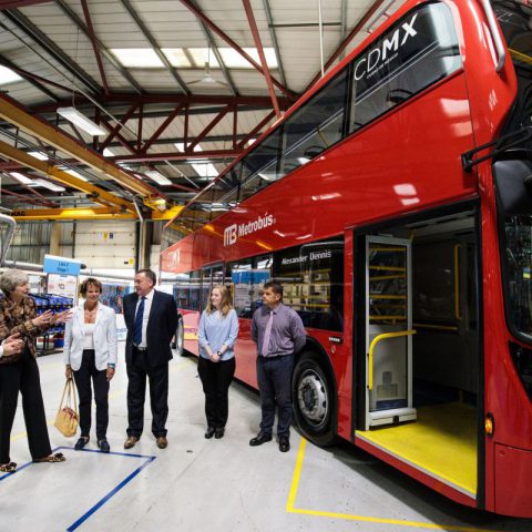 Alexander Dennis Limited, principale produttore di autobus in Regno Unito, consegnerà 90 autobus due piani Enviro500 a Città del Messico. Per celebrare la commessa (e annunciare una politica governativa di supporto alle esportazioni), il primo ministro Theresa May ha visitato nei giorni scorsi lo stabilimento dell’azienda a Guildford, nel Surray.