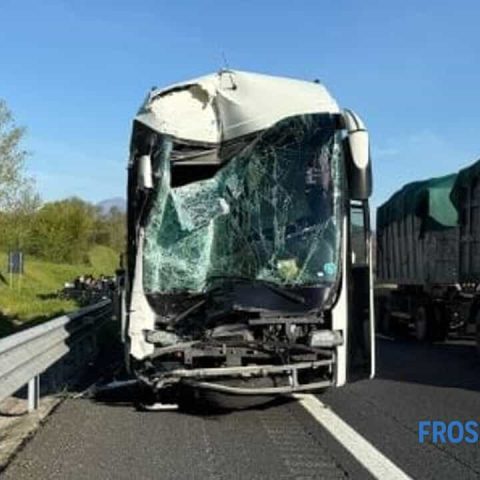 Le cause dell’incidente sono in fase di accertamento: l’impatto è stato particolarmente violento, come testimonia il frontale distrutto dell’autobus, fotografato da Frosinone Today, che per primo ha riportato la notizia.