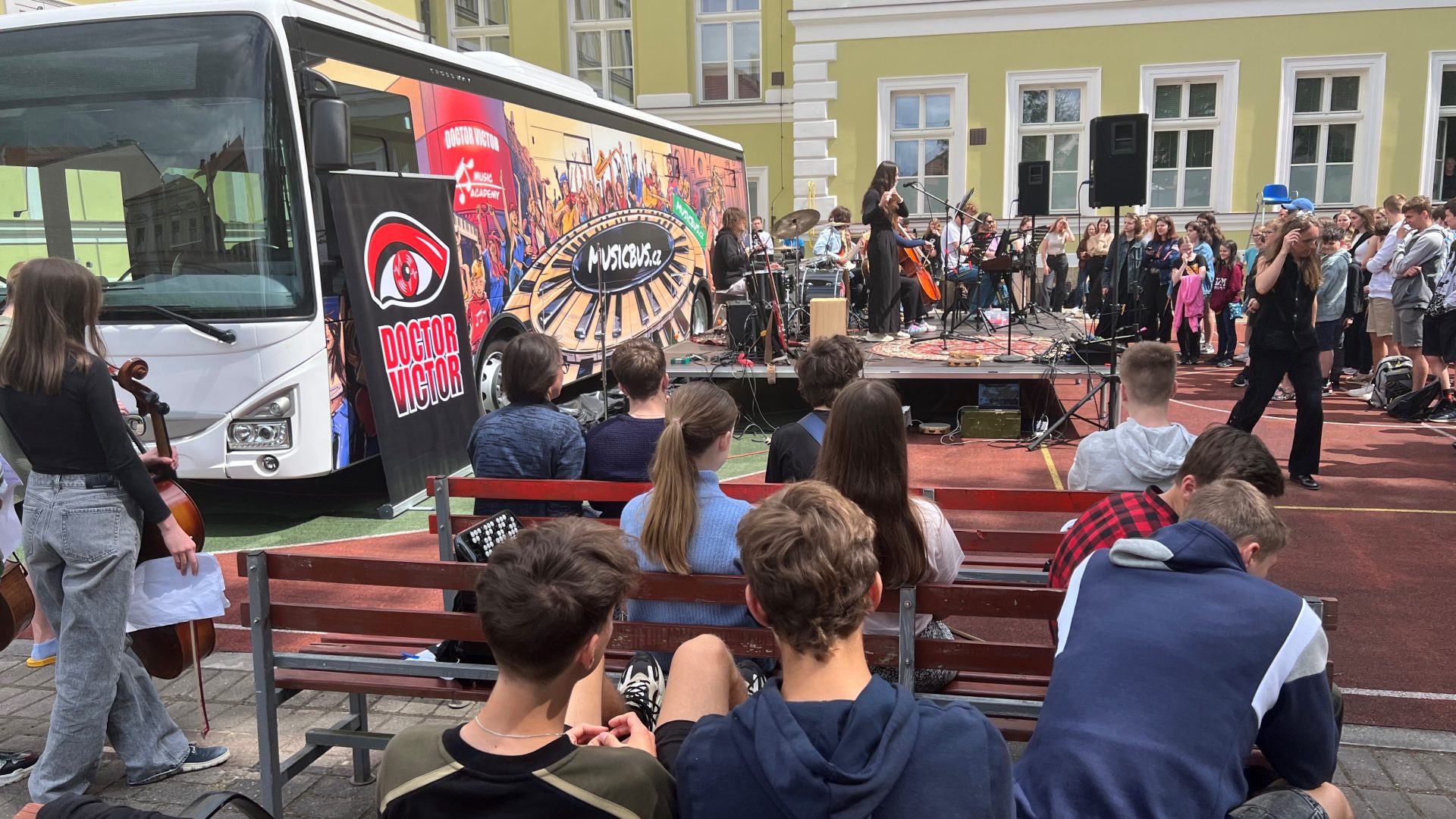 Il progetto Music Bus, reso possibile dalla collaborazione tra Iveco Czech Republic e la rock band Doctor Victor, ha previsto la fornitura di un Crossway Low Entry da 12 metri di lunghezza. Per questo programma dedicato alla musica, il veicolo è stato dotato di uno studio di registrazione, un’aula scolastica e un palcoscenico. Il Music Bus è così diventato centro educativo, ospitando svariate attività, tra cui una serie di esibizioni e dei laboratori guidati dalla Doctor Victor Academy, oltre a fornire supporto ai giovani musicisti del posto.