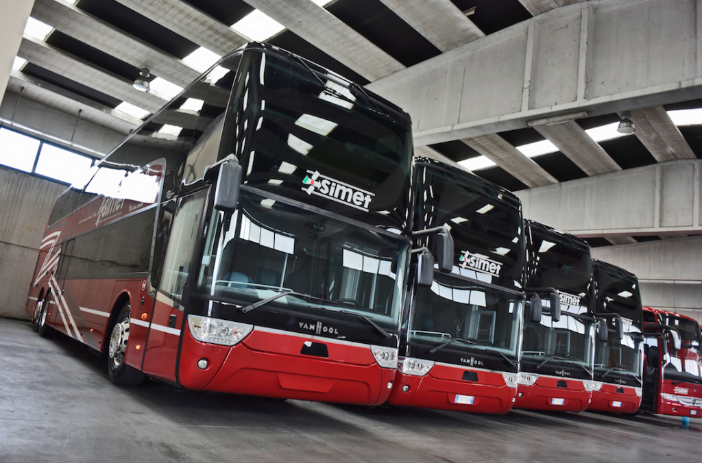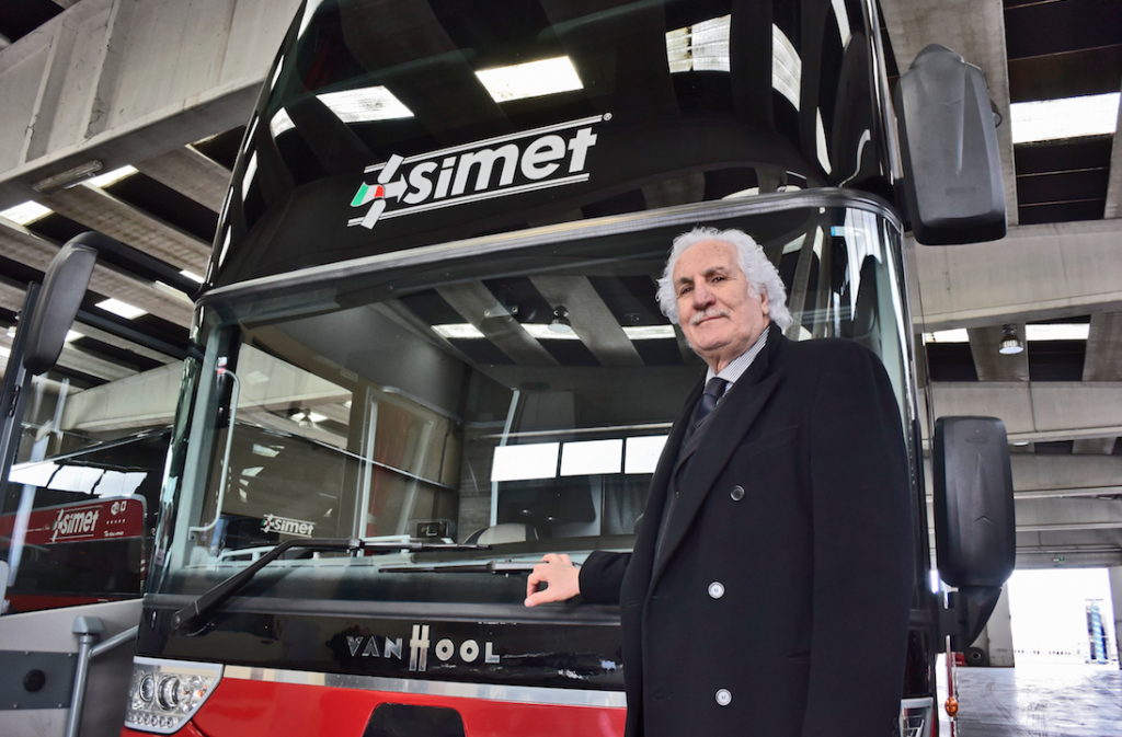 Il parco macchine targato Simet è particolarmente giovane. Solo il 5 per cento degli autobus ha una motorizzazione Euro IV mentre la restante parte è in Euro V ed Euro VI. «Sostituiamo gli autobus ogni 4 anni, abbiamo una visione industriale e gli investimenti in tecnologia sono di primaria importanza per noi». Il Gruppo guidato dalla famiglia Smurra è composto da due società e opera con una flotta di circa 100 autobus. Oltre alla già citata Simet il gruppo conta al suo interno anche l’Autoservizi Pasqualini di Verona. «La Pasqualini è una bella realtà», continua Gerardo Smurra, «che ha un ottimo rapporto con l’Atv di Verona, un grande gruppo da 1.000 dipendenti. Sempre come Simet siamo presenti anche a Roma nel settore del turismo».