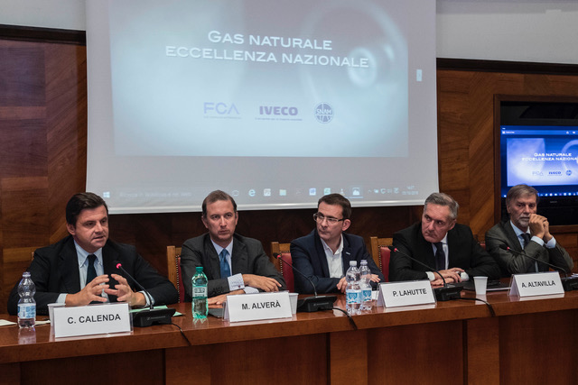 Nella foto Carlo Calenda, Marco Alverà (Snam), Pierre Lahutte (Iveco), Alfredo Altavilla (Fca), Graziano Delrio