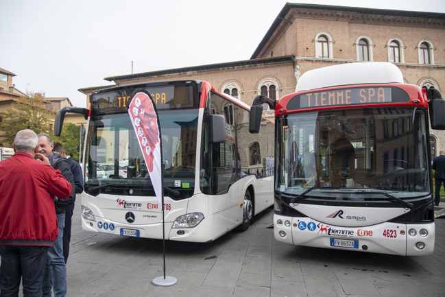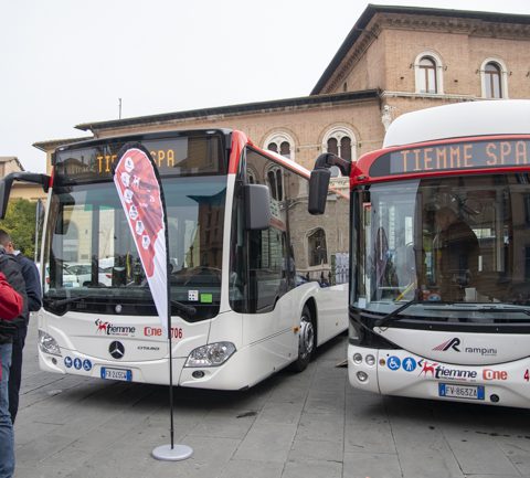 Consegna green in quel di Siena, dove Tiemme punta su ibridi ed elettrici e ha presentato lunedì i primi arrivi di una consegna complessiva di 14 mezzi. In piazza Matteotti due Mercedes Citaro K Hybrid (ne arriveranno in tutto sei), due autobus elettrici Rampini e due Iveco Daily Urban diesel.