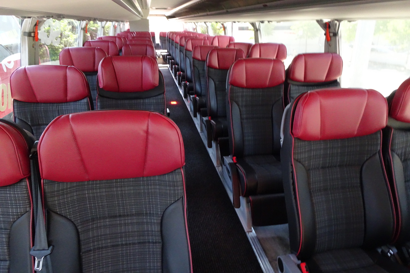 A completare l’allestimento figurano i sistemi di riscaldamento e climatizzazione firmati Hispacold. 840 i litri di gasolio a bordo, divisi in tre serbatoi ognuno da 280 litri. I 66 passeggeri ospitabili a bordo trovano posto su poltrone Brusa Extend 500 allungabili in ecopelle e tappezzate in velluto nella parte centrale e sulle bande laterali. Presenti all’appello poggiapiedi, tavolini estraibili e portariviste. Due i ‘salottini’ con tavolino al piano inferiore, che ospita 18 persone. I tre veicoli per Ferrovie del Gargano presentano una personalizzazione del tetto in modo da renderlo ‘consonante’ con la tonalità delle sedute. Il pavimento è in finto legno.