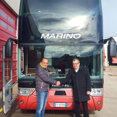 Si sta chiudendo così la maxi commessa da sessanta double-decker Van Hool Astromega formalizzata a inizio estate del 2016 da Marino autolinee. Trenta sono stati consegnati a metà settembre, gli altri trenta arriveranno entro i primi mesi del 2017, come ha confermato il titolare Gerardo Marino. Il ‘colpo di fulmine’ tra l’operatore di Altamura e il costruttore belga è cosa recente. Prima l’acquisto di tre veicoli, un Astromega e due Altano, quindi il massiccio ordine di Astromega dotati di chaise-longue e spinti da motore Daf da 510 cavalli. Settanta i posti a sedere. Si è trattato di una commessa inaspettata: Marino era infatti legato da un rapporto trentennale con Setra, di cui ha in flotta circa cento esemplari.