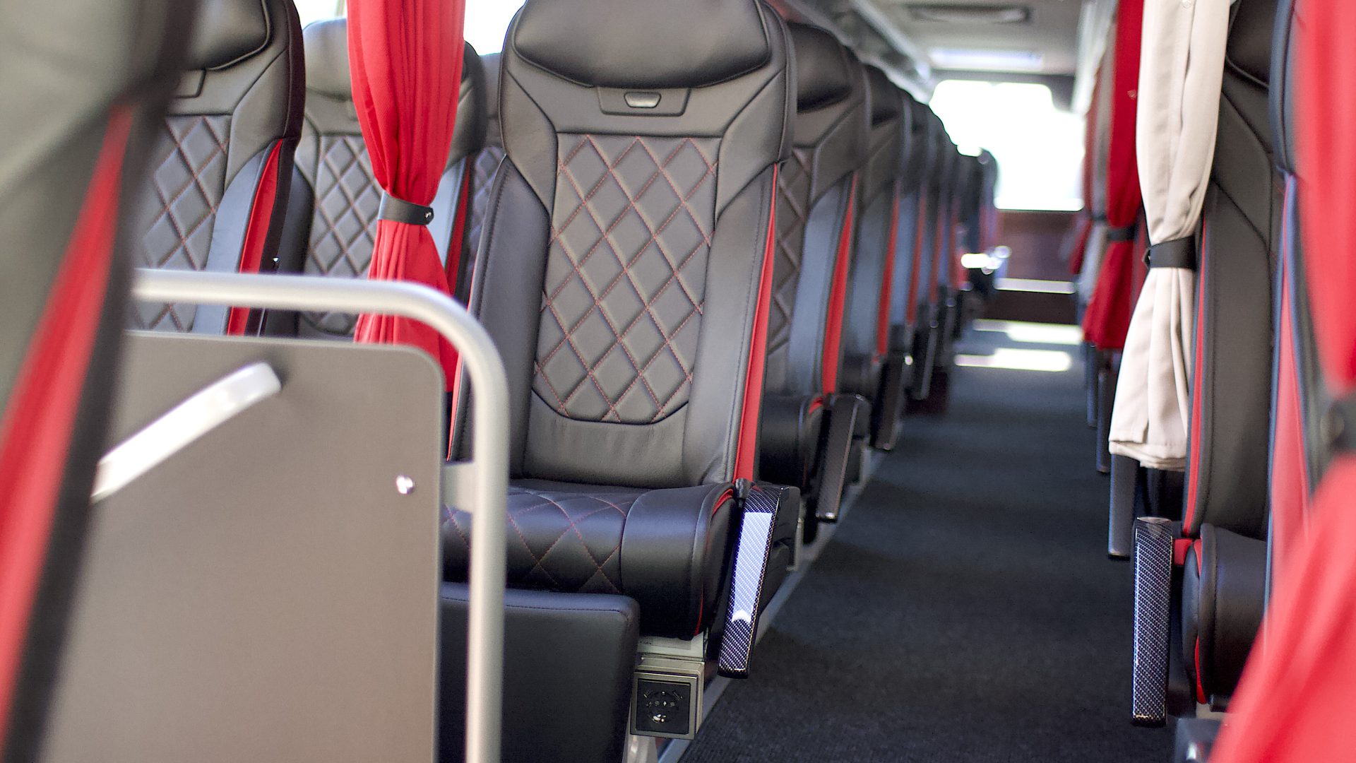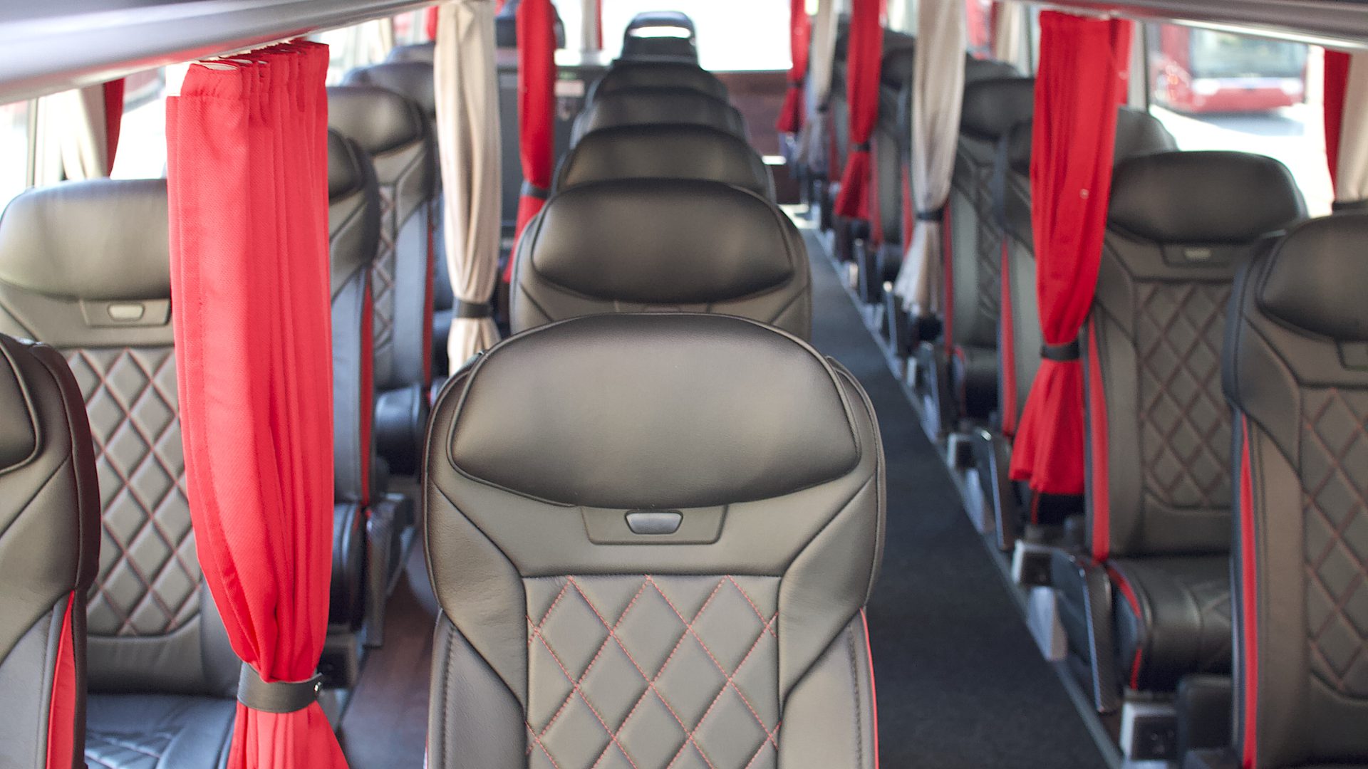 Il piano superiore di questi autobus offre ai passeggeri poltrone XXL disposte in file da tre sedili singoli, con le due sedute laterali e quella centrale distanziate in modo equo. Questo nuovo concetto innovativo garantisce livelli di comfort, privacy e facilità di movimento superiori.