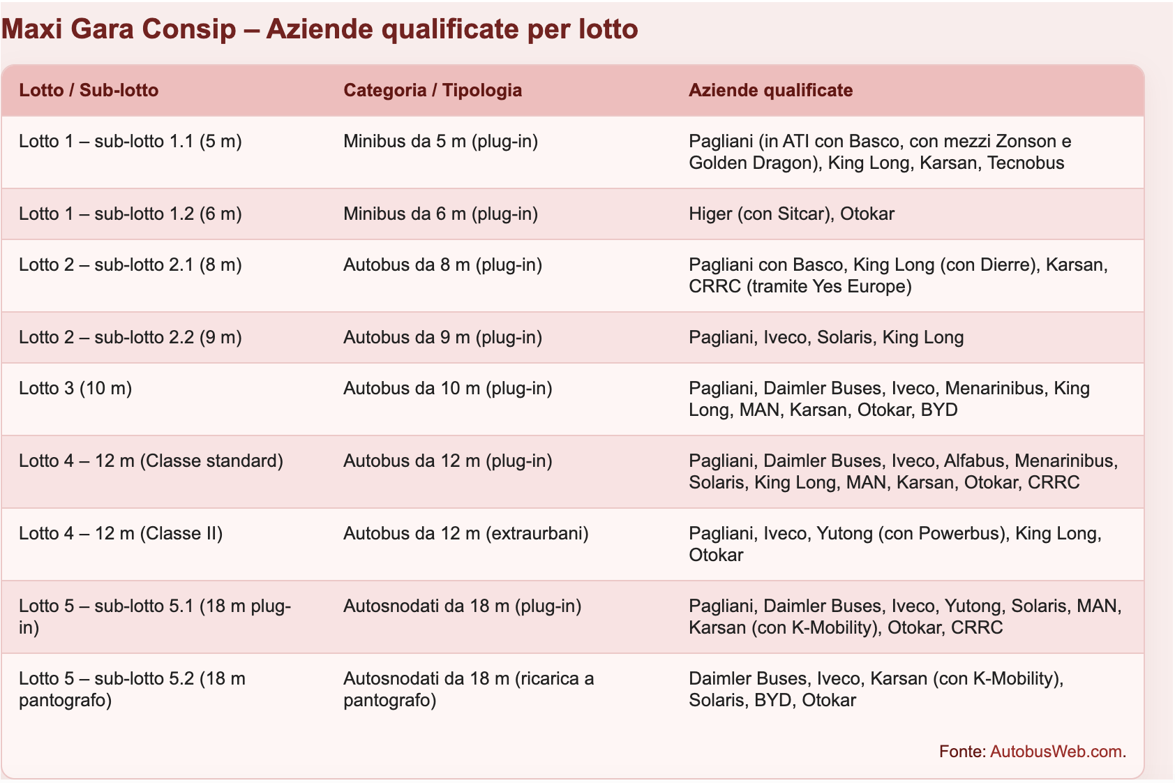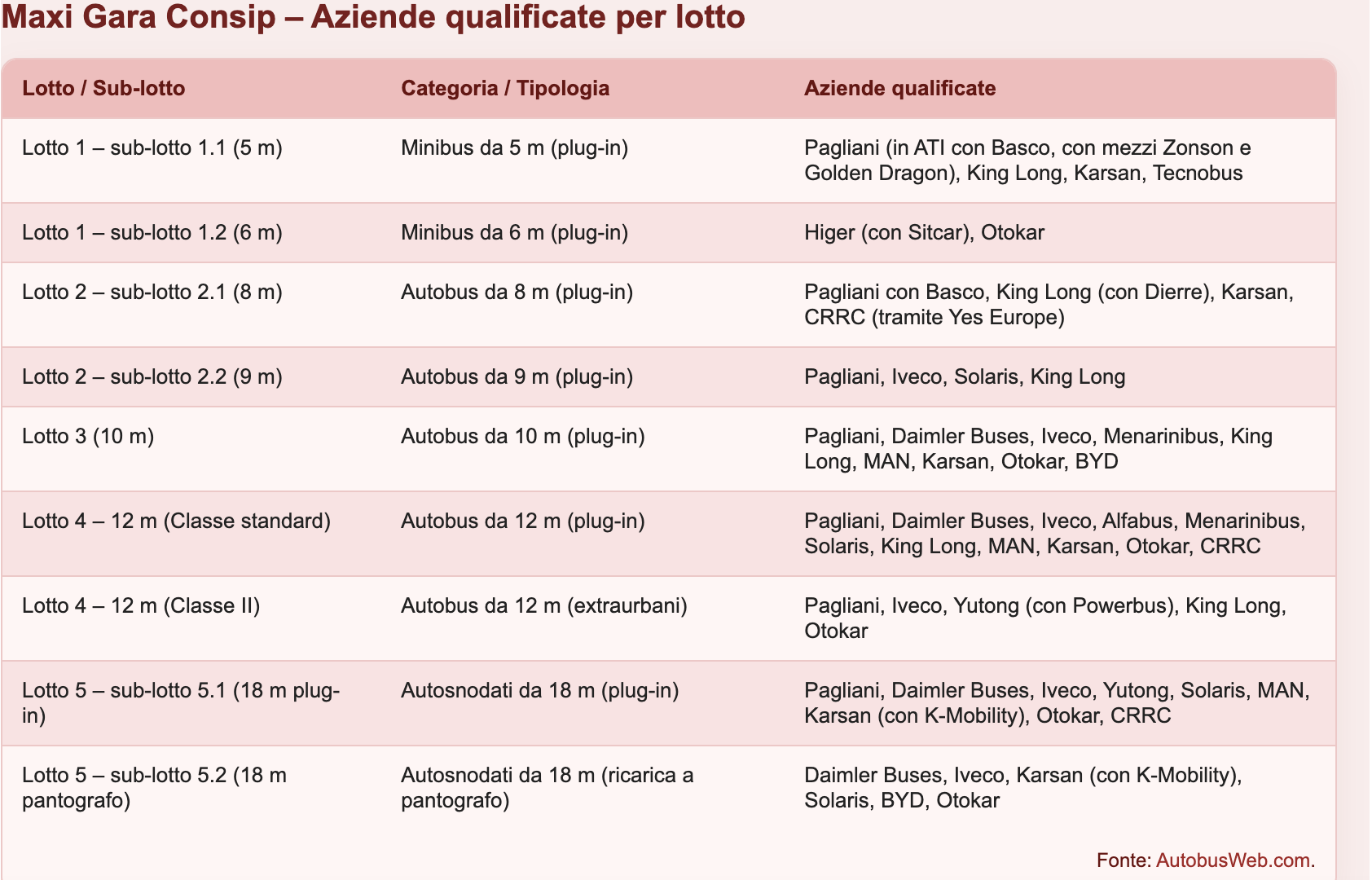 Qualificati? Pagliani, Daimler Buses, Iveco, Alfabus, Menarinibus, Solaris, King Long, MAN, Karsan, Otokar e Crrc.