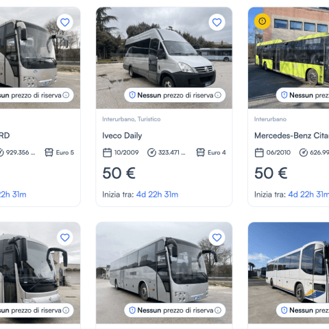Due Temsa Safari RD, due Irisbus – un modello 397E.12 e uno 389E, un Mercedes-Benz Citaro e un Iveco Daily: sono questi i sei autobus all’asta, dal 2 al sei marzo, con prezzo di partenza di appena 50 euro. Questa l’iniziativa speciale di Fleequid, marketplace europeo specializzato nella compravendita di autobus e veicoli professionali, con oltre 40 anni di esperienza nel settore e una presenza internazionale in più di dieci Paesi.