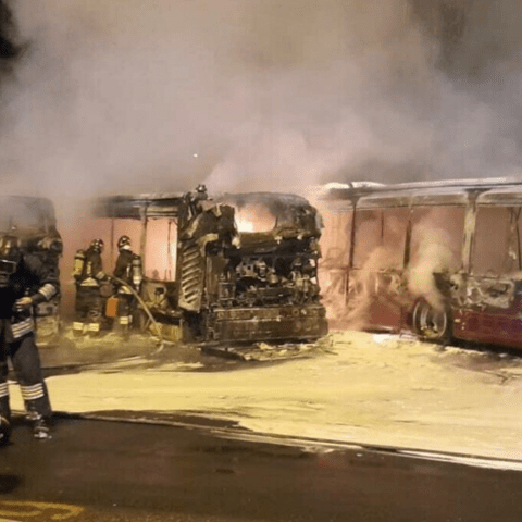 Nella rimessa Atac di Grottarossa tre autobus sono stati distrutti da un incendio. Le fiamme sono scoppiate intorno alle 4 del mattino con i vigili del fuoco arrivati sul posto, secondo quanto si apprende, circa 30 minuti dopo. Il funzionario di servizio, due squadre – la 8A e 9/A – con una autobotte, il carro schiuma ed il carro auto-protettori, hanno lavorato per ore nel deposito via della Stazione di Grottarossa.