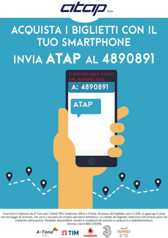 Prosegue il processo di digitalizzazione e di semplificazione della bigliettazione elettronica delle aziende di TPL italiane. ATAP Spa, azienda di trasporto pubblico urbano di Pordenone, ha appena annunciato di aver siglato un accordo con A-Tono per introdurre sul territorio il servizio di mobile ticketing. Il biglietto del bus sarà quindi acquistabile direttamente con un SMS, a partire dal 26 aprile per i clienti Vodafone, Wind e 3 Italia, mentre per i clienti Tim il servizio sarà attivo da fine maggio. Il metodo di utilizzo è semplice: basterà inviare un SMS con scritto ATAP al 4890891 – al costo di 1,50 € più il costo del servizio in base al proprio operatore telefonico – e in pochi secondi si riceverà un codice di conferma dell’avvenuto acquisto. Essendo digitale, il titolo di viaggio non necessita di convalida e in caso di verifica da parte di un controllore basterà mostrare l’SMS di risposta ricevuto. “ATAP offre agli utenti un servizio estremamente semplice, comodo e veloce, che consente di dare una risposta pratica alla necessità di reperire i biglietti in mancanza di contante” si legge in una nota rilasciata in merito al lancio del nuovo servizio.