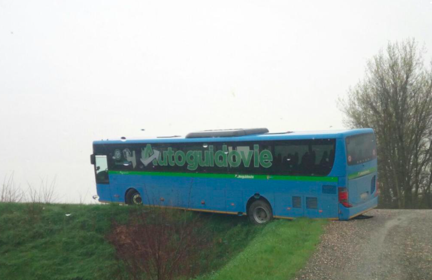 Autobus Autoguidovie sull’argine del Po per colpa del navigatore