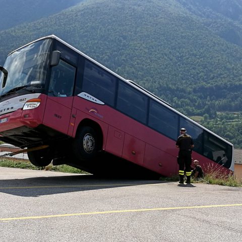 La foto dice tutto. Un autobus fermo nel piazzale, il freno di stazionamento che cede, il lento spostamento indietro… fino a trovarsi in bilico su un dislivello di qualche metro. Il fatto è accaduto ieri in Trentino, più precisamente ad Anghebeni, frazione di Vallarsa. Il mezzo coinvolto è uno dei cinque autobus extraurbani di Trentino Trasporti destinati al servizio in Vallarsa. L’incidente, e il recupero, è stato documentato dalla testata locale “l’Adige”.
