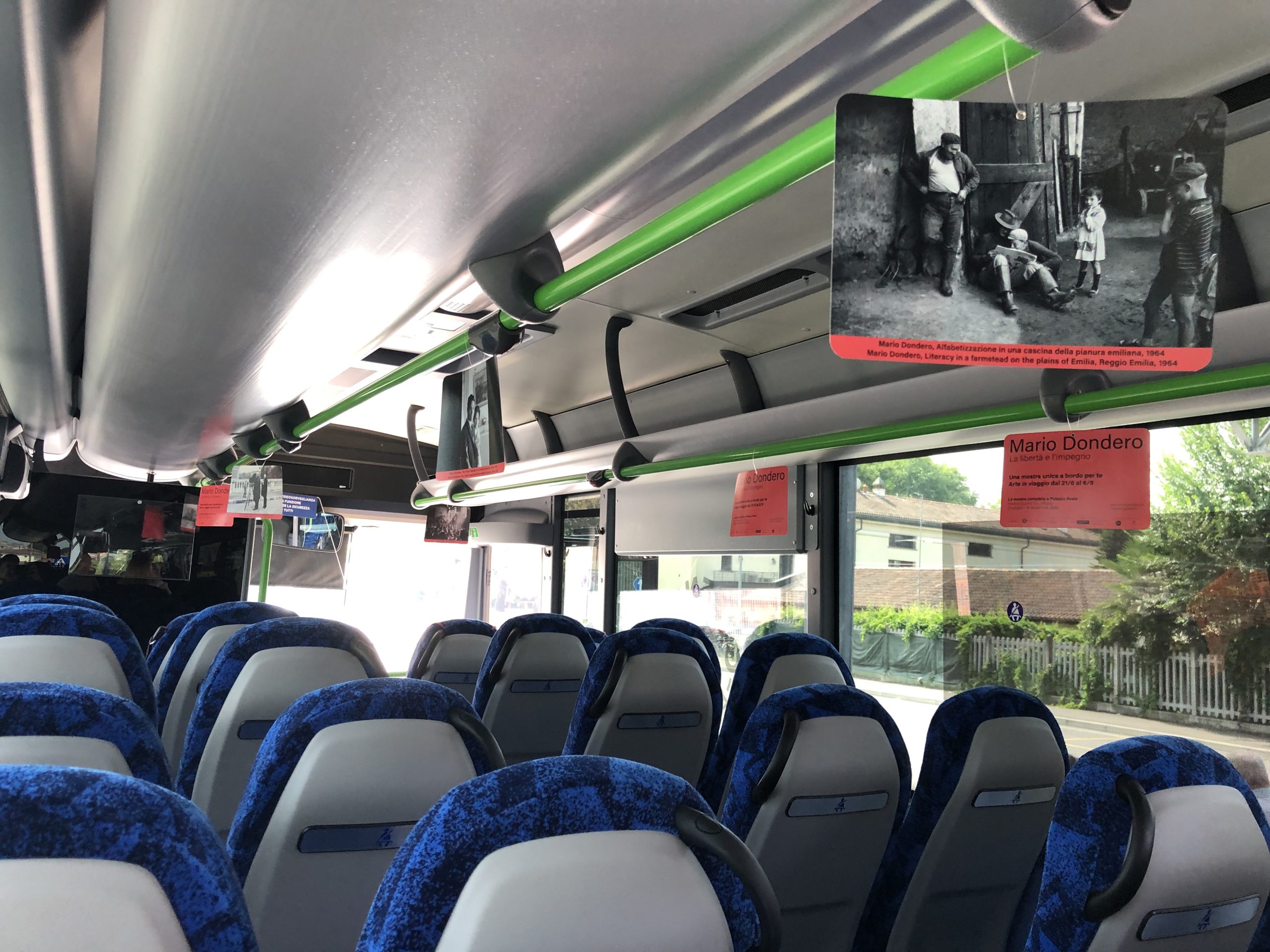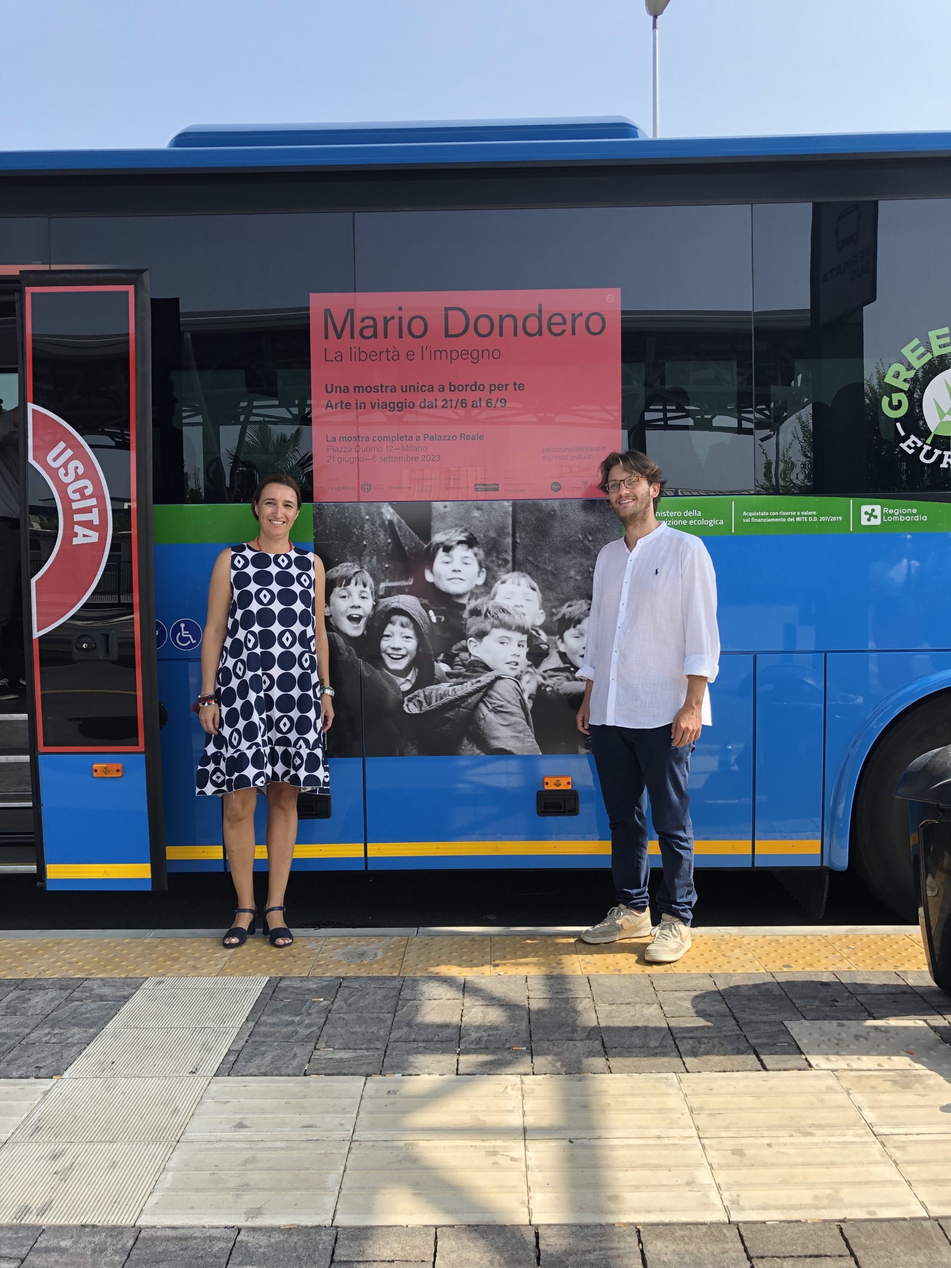 Oltre 500 autobus di Autoguidovie, che coprono le tratte nei territori di Crema, Milano, Monza e Brianza e Pavia, sono stati allestiti per trasformarsi in mostre itineranti: i pendenti, ovvero le cartoline appese sui corrimani, ripropongono una selezione degli scatti che Mario Dondero (1928 – 2015), protagonista della fotografia italiana e fotoreporter di spicco a livello internazionale, ha collezionato nell’arco della sua carriera.