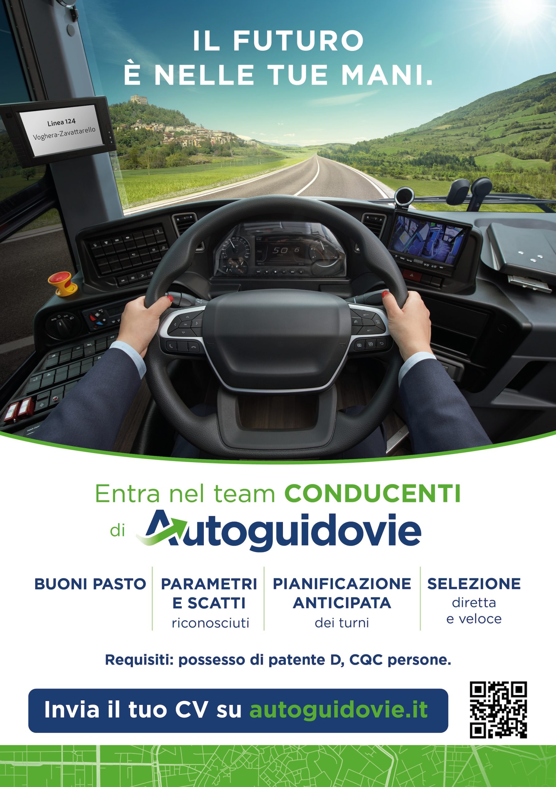 Autoguidovie è partita da questo pensiero per creare la campagna per la ricerca di nuovi conducenti 2024. Al fine di rendere i messaggi efficaci e trasparenti e con un approccio totalmente innovativo ha messo insieme il team di comunicazione, le risorse umane e gruppi di conducenti di ogni territorio in cui la società opera per fare sintesi e raccogliere impressioni e punti di vista di ciascuno. Sono seguite analisi, confronti e riunioni attraverso le quali si sono costruiti tutti gli elementi della campagna di selezione, dalla scelta del messaggio agli aspetti grafici con l’obiettivo di incuriosire e ingaggiare i destinatari, ovvero conducenti (donne e uomini) che vogliano entrare a far parte della squadra, già in possesso delle patenti D o DE + CQC persone in tutti i territori in cui è attiva Autoguidovie (Pavia, Milano, Cremona, Monza e Brianza, Bergamo, Brescia, Bologna).
