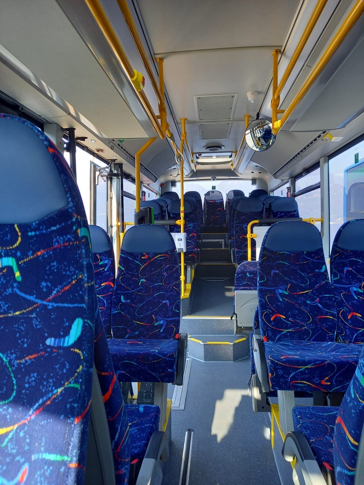 Lunghi 8 metri e adatti alle tortuose strade delle valli, presentano il pianale ribassato che permette un agevole accesso ad eventuali utenti con difficoltà motorie o in sedia a rotelle: la selleria a disposizione dei passeggeri è indubbiamente molto confortevole così come lo è il posto guida del conducente, il quale può contare anche sull’ausilio della videosorveglianza interna, di una telecamera presso la porta posteriore e del conta-persone.