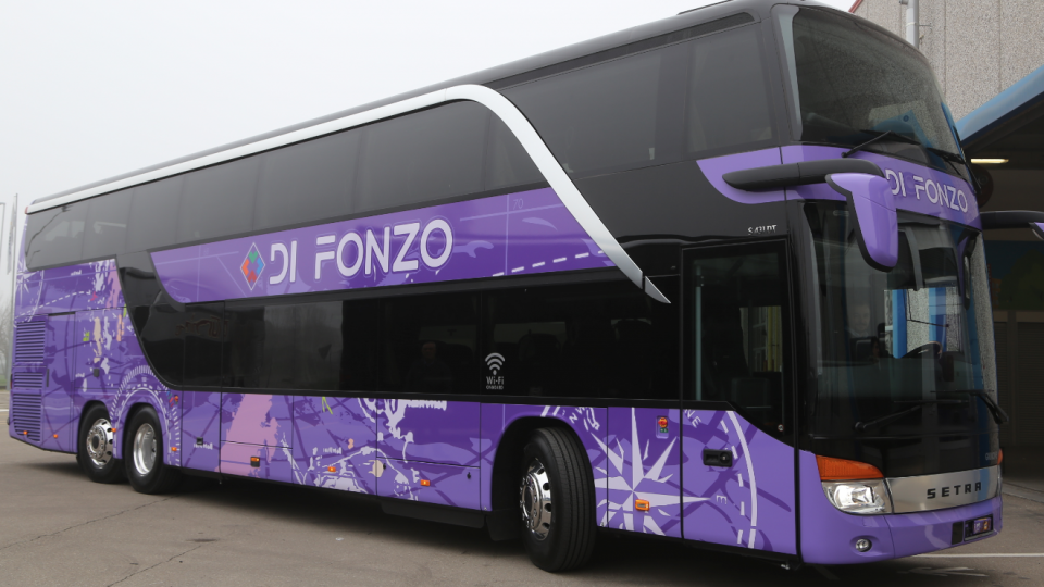 Opererà sul tragitto Vasto-Lanciano-Roma il nuovo due piani di casa Setra da poco consegnato alla Di Fonzo. Il Setra S431 in oggetto conta al suo interno 74 posti a sedere e presenta un allestimento full optional e si muove grazie al motore Euro VI in tandem con la trasmissione automatizzata. A tatu...
