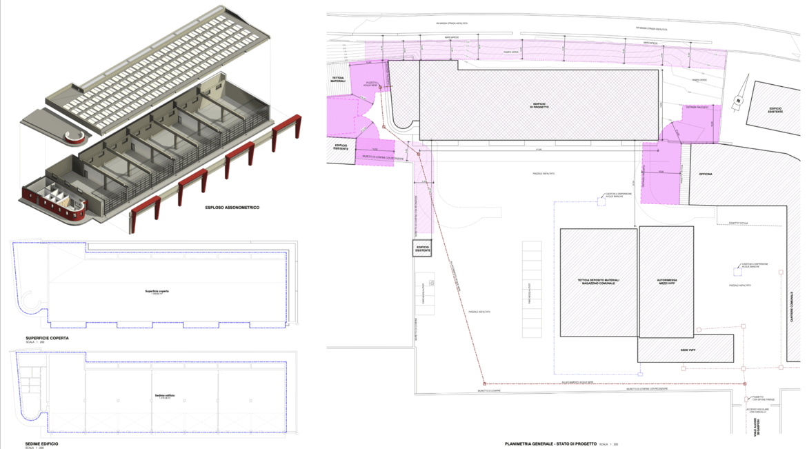 Si prevede quindi la realizzazione di un nuovo fabbricato, con struttura in cemento armato, sviluppato su un unico piano parzialmente interrato, integrato nella rampa esistente tra via Massa e il piazzale asfaltato. La superficie complessiva sarà di 1.100 metri quadrati, suddivisa in un’area per il rimessaggio dei bus con 14 stalli (circa 1.000 metri quadrati), e un’area per i servizi accessori (locali tecnici, magazzino, spogliatoi e sala autisti) di circa 100 metri quadrati. Gli accessi saranno direttamente dal piazzale asfaltato, con una copertura piana integrata alla rampa verde esistente.