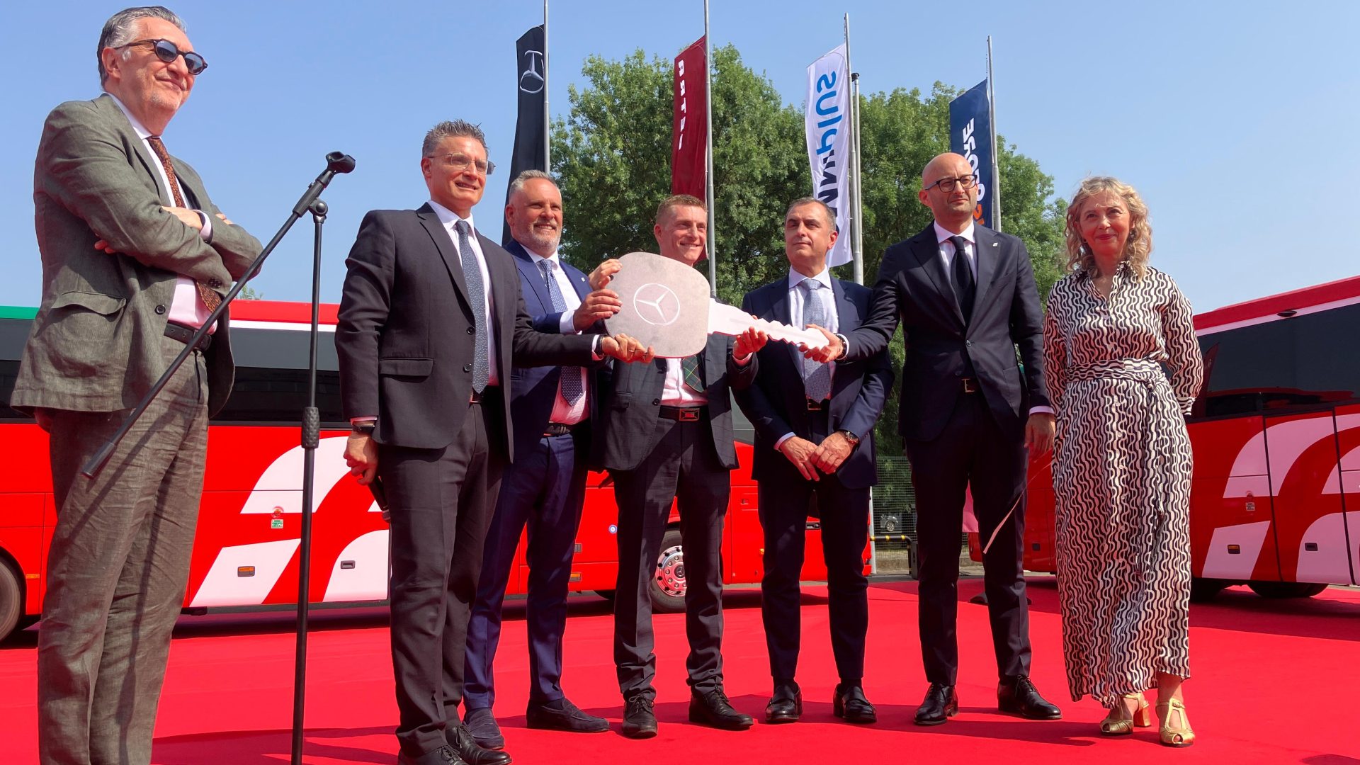 “Oggi celebriamo una partnership che, per numeri e valore strategico, è un modello di eccellenza nel settore. Questa fornitura rappresenta un record storico: 111 autobus in un’unica commessa e con assistenza full service OMNIplus – un primato assoluto per Daimler Buses Italia, che con 352 autobus urbani, 484 interurbani, 127 veicoli destinati al servizio del turismo, porta a 963 gli autobus forniti a Busitalia”, ha dichiarato Stefano Giordani, Presidente e Amministratore Delegato Daimler Buses Italia.