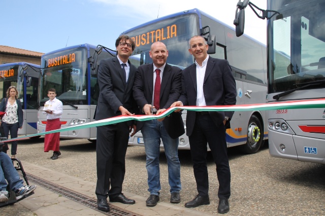 Sono stati presentati ufficialmente sabato scorso i cinque nuovi autobus di Busitalia Sita Nord nel corso di un cerimonia di consegna a Tavarnelle Val di Pesa (FI), in presenza del’Amministratore Delegato di Busitalia Sita Nord, Renato Mazzoncini, del Sindaco della città David Barocelli e del Delegato della Città Metropolitana Massimiliano Pescini. I nuovi mezzi rientrano in un acquisto complessivo di 17 bus effettuato nel 2015 dalla compagnia del Gruppo FS che si occupa di trasporto pubblico su gomma. Busitalia per l’occasione ha scelto dei Mercedes Intouro da 12 metri di lunghezza, in grado di ospitare a bordo 26 passeggeri in piedi e 51 a sedere. I mezzi verranno utilizzati per il servizio di trasporto extraurbano nelle zone del Chianti, del Valdarno e della Val di Pesa. Contraddistinti dalla nuova livrea di Busitalia, i Mercedes Intouro rispecchiano i moderni standard sia in ambito di comfort che di rispetto dell’ambiente: tutti i bus sono di classe Euro 6 e consentono all’operatore di proseguire il rinnovamento della flotta introducendo mezzi a minor impatto ambientale. Entro l’anno, ha assicurato l’azienda del Gruppo FS, saranno immatricolati altri 9 autobus destinati al trasporto extraurbano, riducendo così sensibilmente l’età media del parco veicoli.