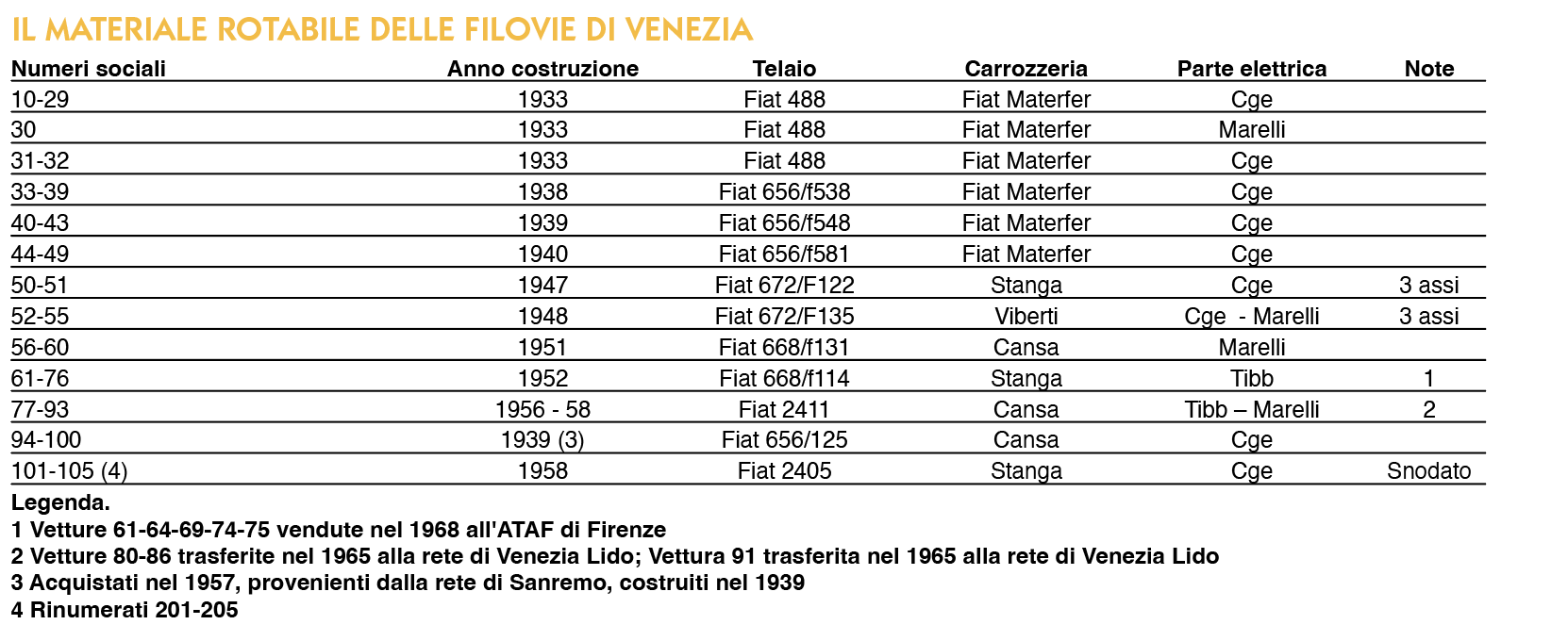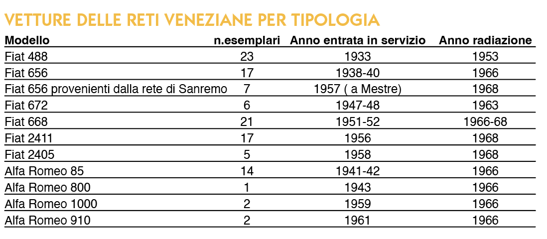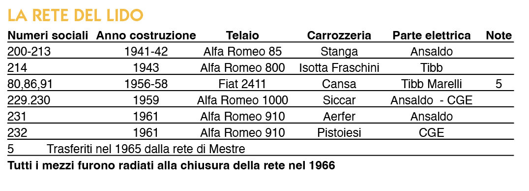 Nel 1965 furono trasferiti dalla rete di Mestre tre Fiat 2411, macchine sicuramente valide e ancora giovani, costruite tra il 1955 ed il 1958, che purtroppo non ebbero molto tempo a disposizione per dimostrare le loro doti sulla rete del Lido, chiusa verso la fine del 1966 in seguito ai danni provocati dall’alluvione di Venezia.