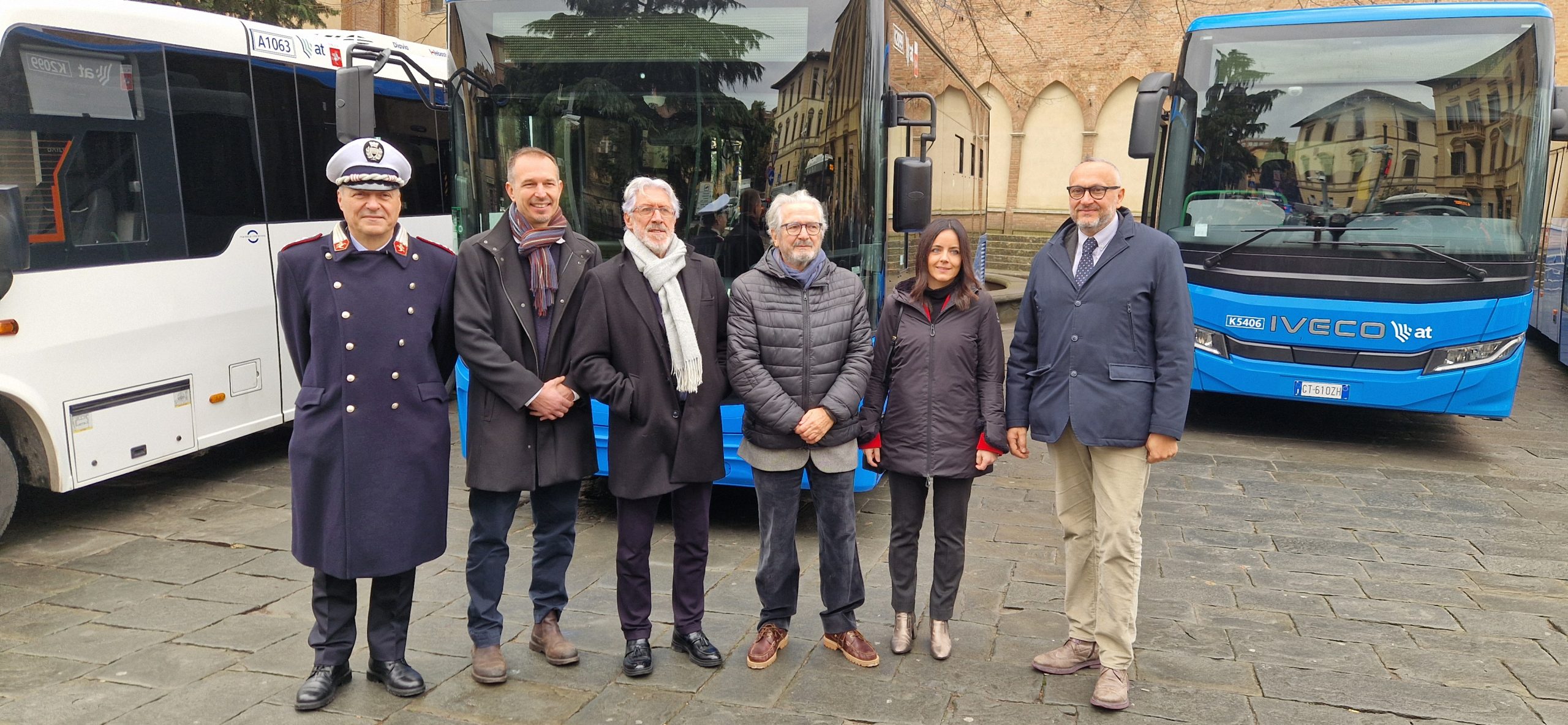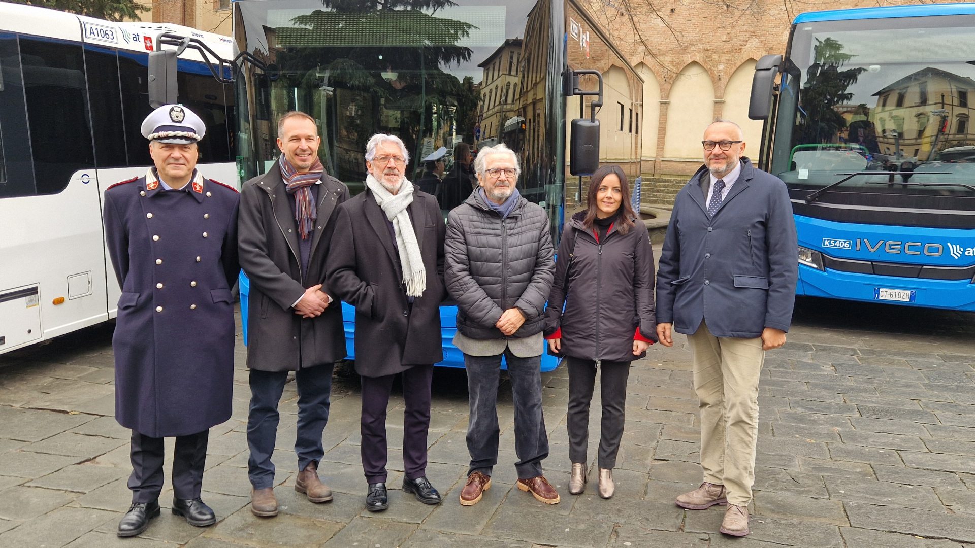 In presenza della Presidente della Provincia di Siena, Agnese Carletti, e dell’assessore alla Mobilità del Comune di Siena, Enrico Tucci, il Presidente di at Gianni Bechelli e l’Amministratore delegato Jean-Luc Laugaa, hanno presentato diverse tipologie di bus che saranno impiegati nelle tratte urbane della città di Siena ed in quelle extraurbane del territorio provinciale.