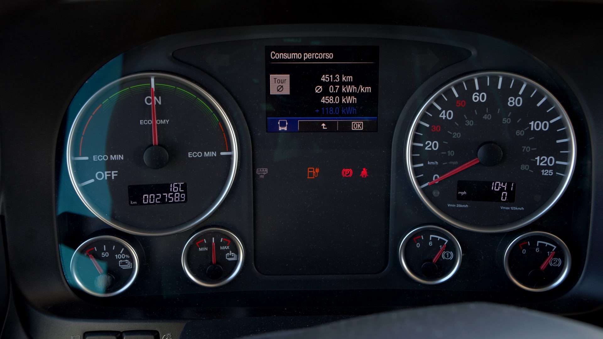 Al termine delle 21 ore e 7 minuti di test il MAN Lion’s City E ha percorso in totale 451,3 km (dall’uscita dal deposito fino al suo rientro) ripetendo il percorso della linea 1 per più di 13 volte con oltre 500 fermate per un consumo di 458 kWh di energia, ovvero circa 0,7 kWh/km. Valori soddisfacenti, raggiunti grazie all’efficiente tecnologia del bus elettrico di MAN e al notevole recupero di energia pari a 118 kWh. Alla fine la batteria aveva ancora una carica residua del 10,5% che avrebbe consentito di percorrere un’altra cinquantina di chilometri, permettendo così al MAN Lion’s City E di superare la “barriera psicologica” dei 500 km totali.