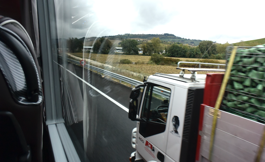 Transitiamo a Rimini Sud alle 12.03, l’autostrada si muove come le colline ai nostri lati. Il Van Hool è un maratoneta, testa bassa e il Daf in coda spinge sui pedali. Ci fermiamo alle 12.36 all’area di servizio di Metauro dove, incredibilmente, si mangia davvero bene!