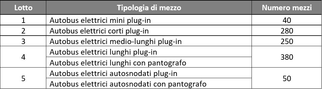 - nel caso di acquisto di autobus senza personalizzazioni specifiche, le PA potranno effettuare un ordine diretto sulla base della migliore offerta tecnico-economica, in relazione al prezzo e alle prestazioni (es. consumo, sicurezza dei veicoli, confort passeggeri)