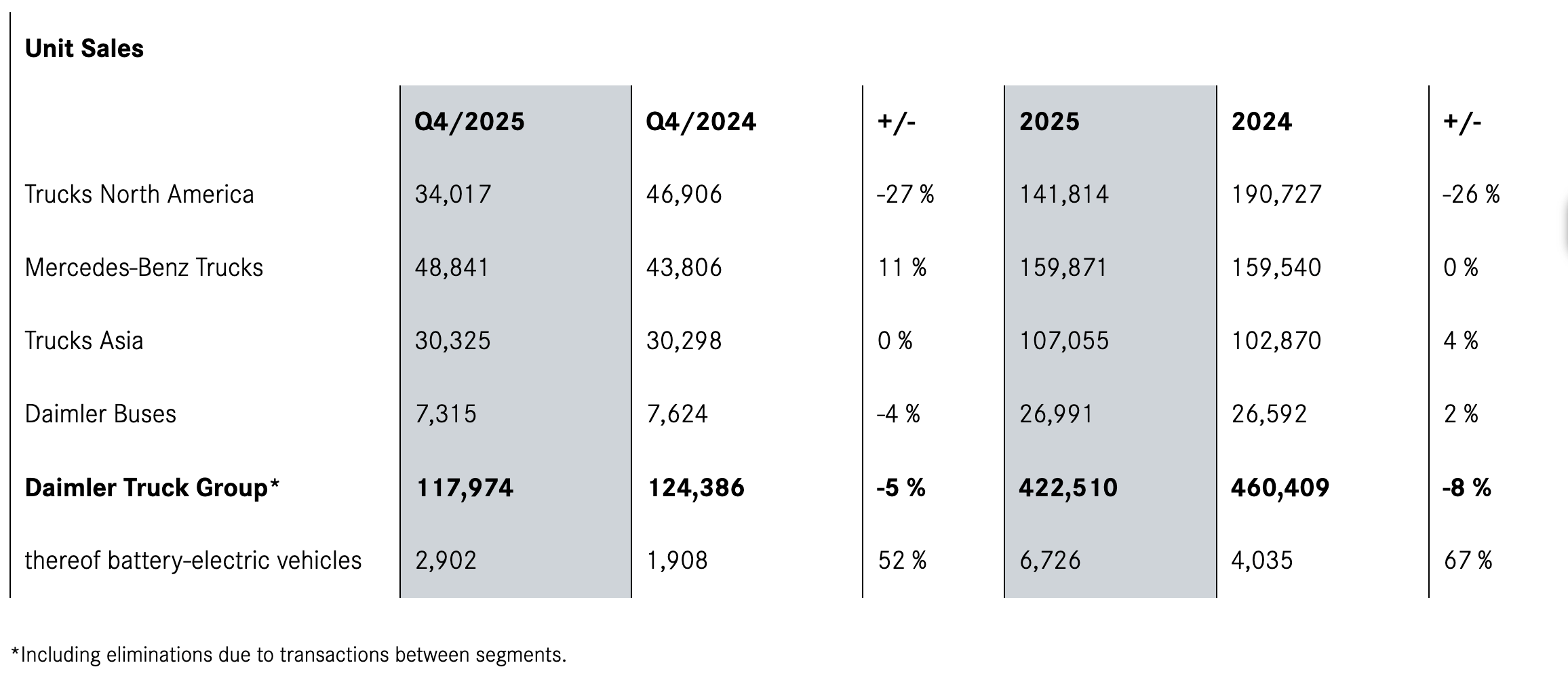 Daimler Truck ha concluso l’esercizio finanziario 2025 con vendite complessive di gruppo pari a 422.510 veicoli, in calo rispetto alle 460.409 unità del 2024. La flessione complessiva riflette condizioni di mercato difficili in diverse regioni chiave per i camion, in particolare in Nord America.