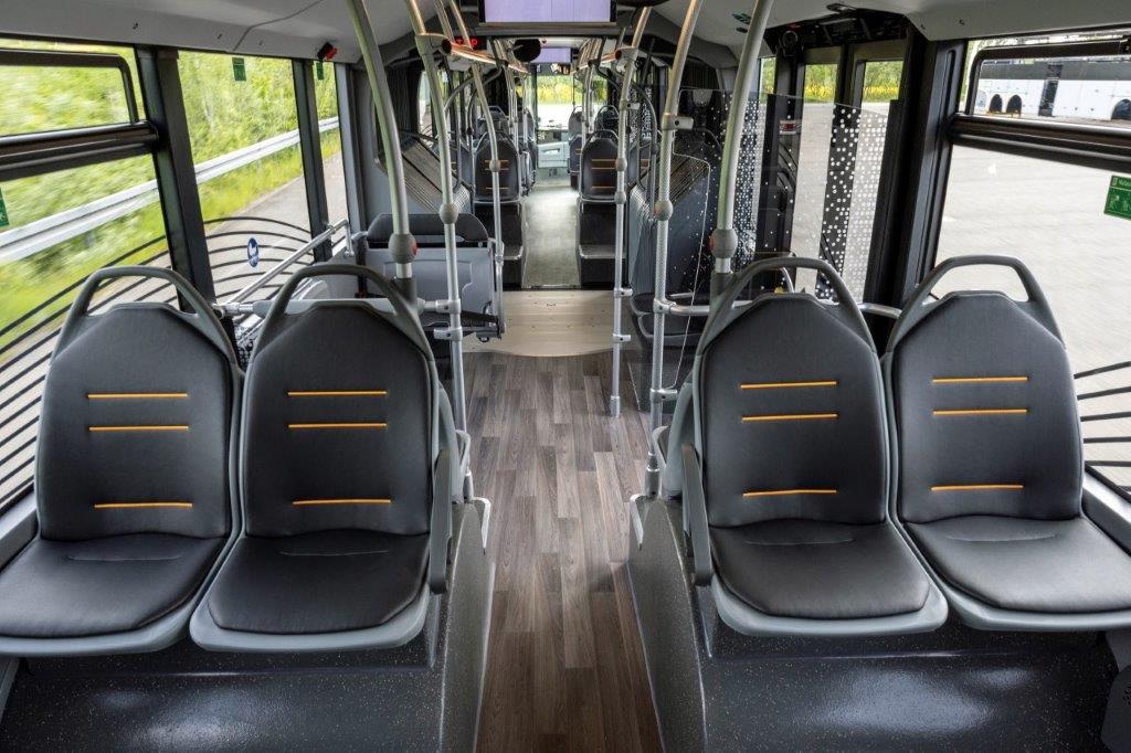 L’abitacolo è climatizzato in modo automatico dal sistema EvoThermatic°basic con pompa di calore e filtro attivo con funzione antivirale, oltre a filtri aggiuntivi per le ventole di riscaldamento, il tutto automatizzato. I passeggeri hanno a disposizione 47 sedili City Star Eco; i maniglioni, alcuni dei quali in acciaio Evo, i corrimano arancioni a soffitto e il soffitto interno di design con illuminazione innovativa sono elementi di spicco. Inoltre, l’utenza a bordo può collegare e utilizzare i propri dispositivi portatili grazie a un totale di 15 porte USB.