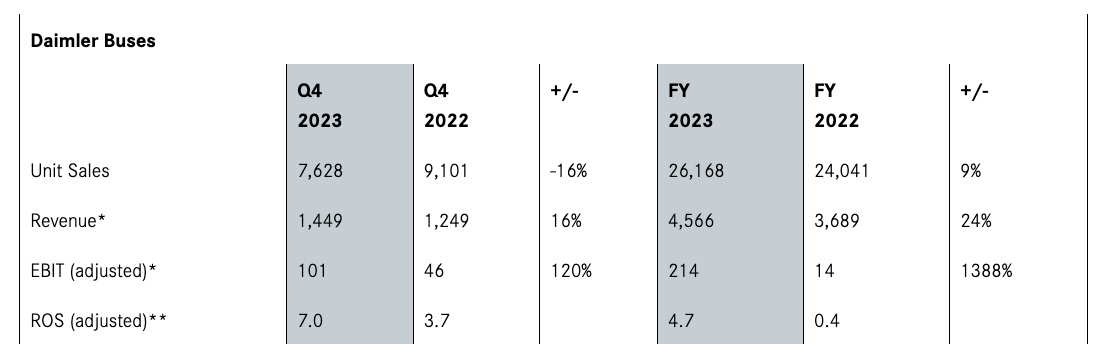 Per quanto riguarda gli autobus, il Gruppo ha venduto il 9% in più di veicoli rispetto al 2022, con un aumento dei ricavi del 24%.
